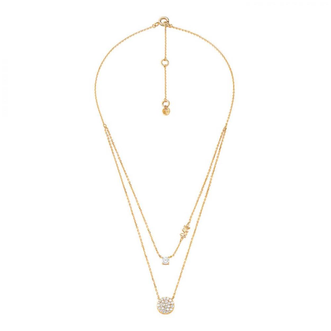 Creeer eenvoudig een luxueuze look voor dagelijks gebruik met Kors Brilliance. De nieuwe dubbellaagse ketting is ontworpen met een stralende centrale steen en een sprankelende, met pave ingelegde schijf. Dit prachtige sterling zilveren sieraad is niet alleen verguld met goud, maar het heeft ook prachtige zirkonia's en subtiele merkaccenten ingelegd in de ketting. Creeer moeiteloos een gelaagde look door deze ketting te combineren met elk ensemble!