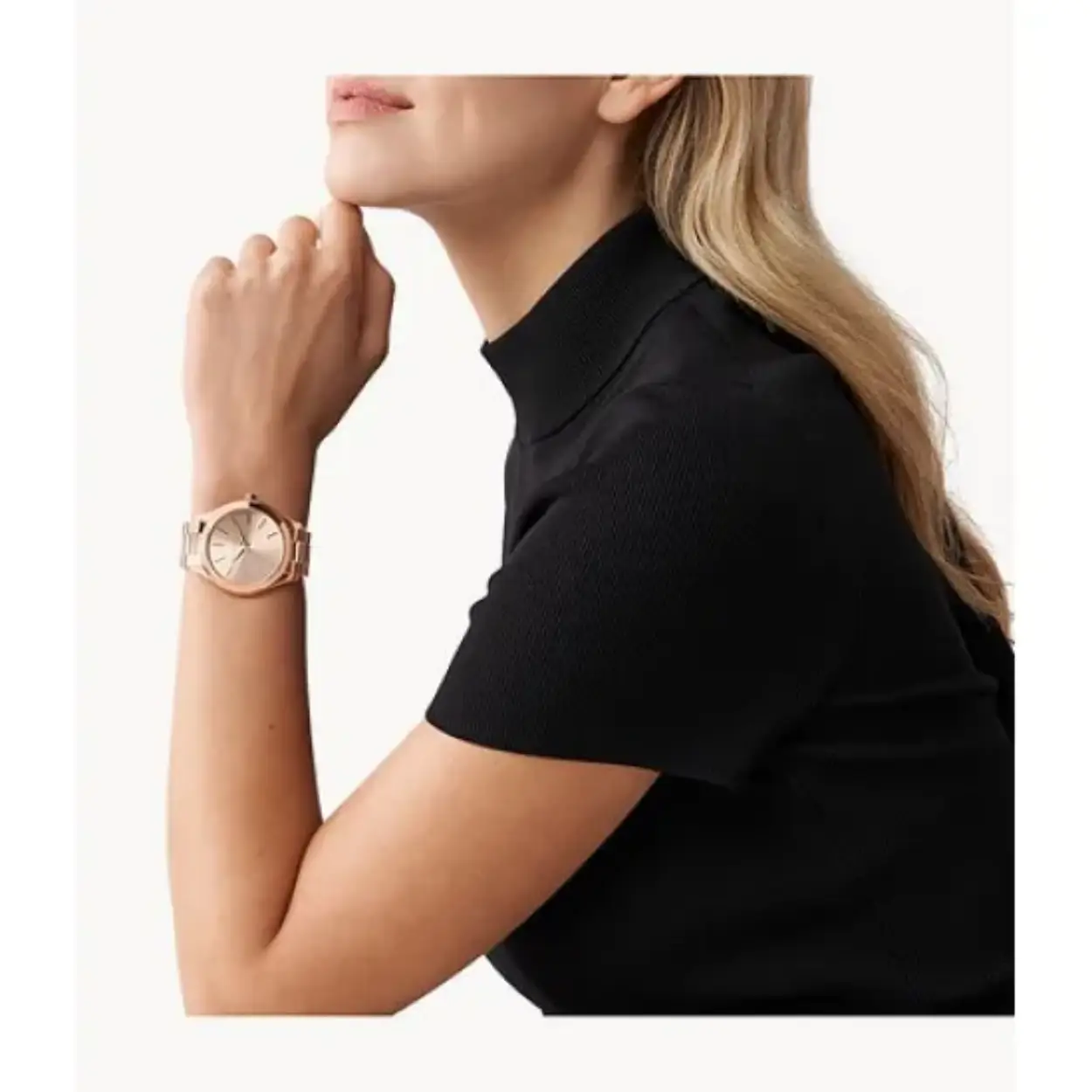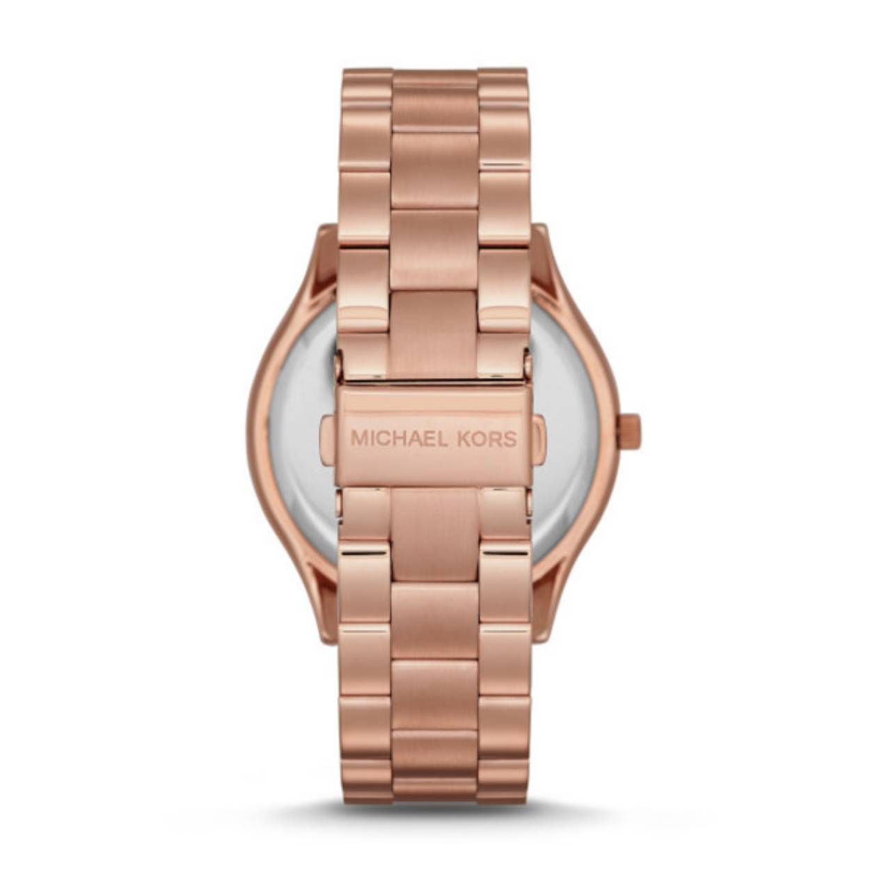 Dit dameshorloge is van het merk Michael Kors. Het is een  horloge met een band gemaakt van edelstaal. De diameter van de kast is 42 mm.