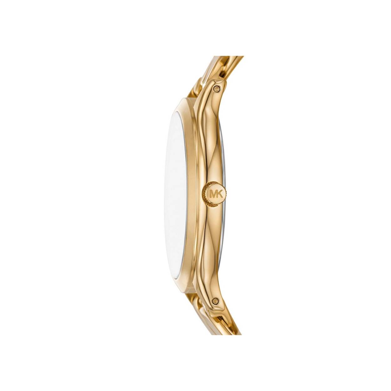 Het horloge beschikt over een quartz uurwerk. Deze prachtige wijzerplaat is wit en is afgedekt met kwalitatief mineraalglas. De horlogekast is gemaakt van rvs en heeft een diameter van 38 mm. De kleur van deze horlogeband is goud en heeft een breedte van 18 mm. De horlogeband is gemaakt van rvs . Met dit prachtige horloge ben je elke dag op de hoogte van de juiste tijd!