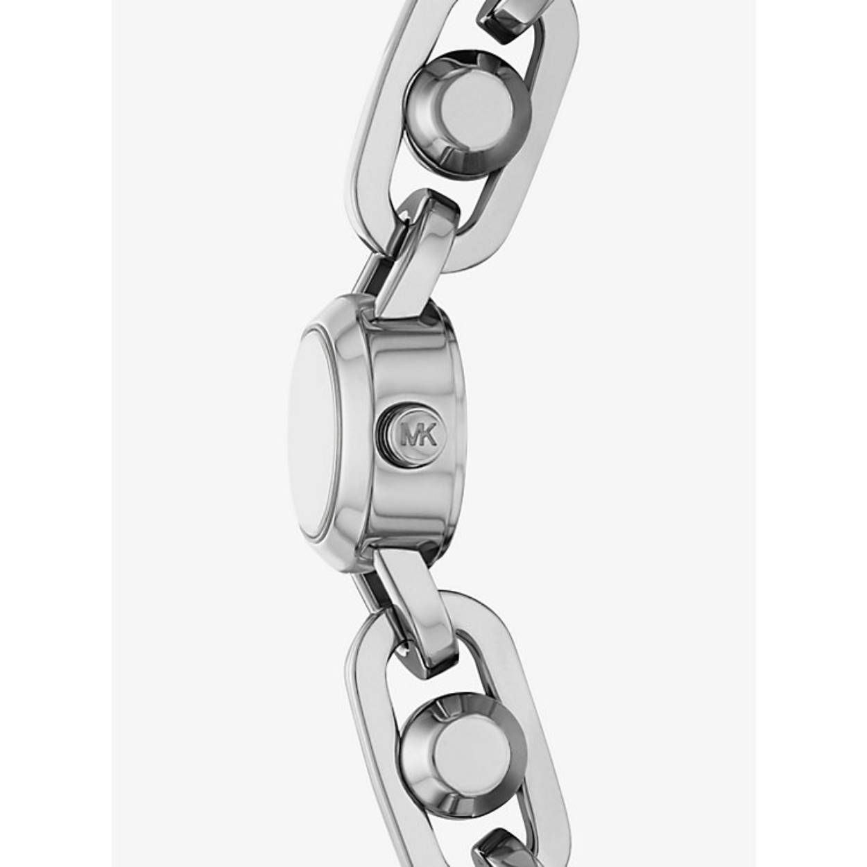 Maak kennis met de Astor: een klassiek horloge in een koele tint met opvallende hardware die een blijvende indruk achterlaat. De minimalistische wijzerplaat straalt luxe uit, terwijl de met studs versierde schakelband voor een chique, stadse uitstraling zorgt. Combineer het delicate design met stijlvolle avondkleding of draag het om een ​​vleugje luxe toe te voegen aan casual outfits.