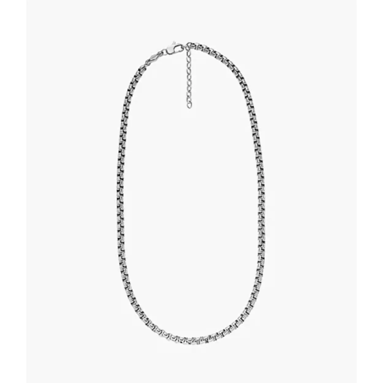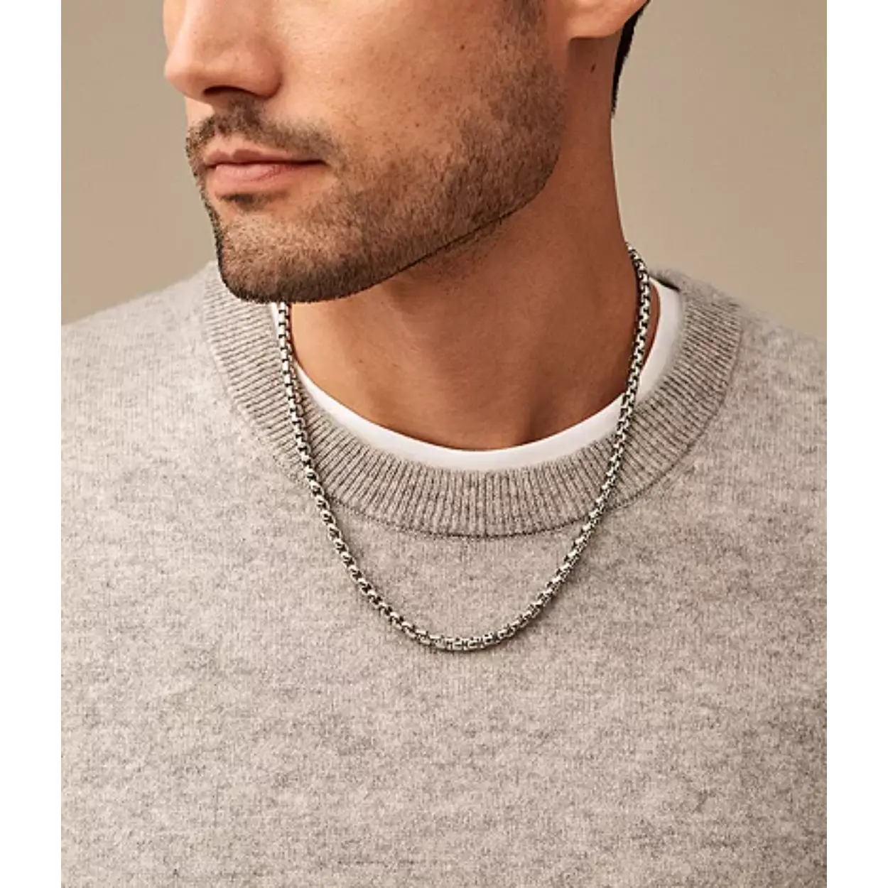 Deze roestvrijstalen box-ketting met hoogglans afwerking is net zo klassiek als een goed maatpak of je favoriete T-shirt (en combineert goed met beide). Draag het zelfstandig als een alledaags item of gelaagd met je favoriete kettingen.