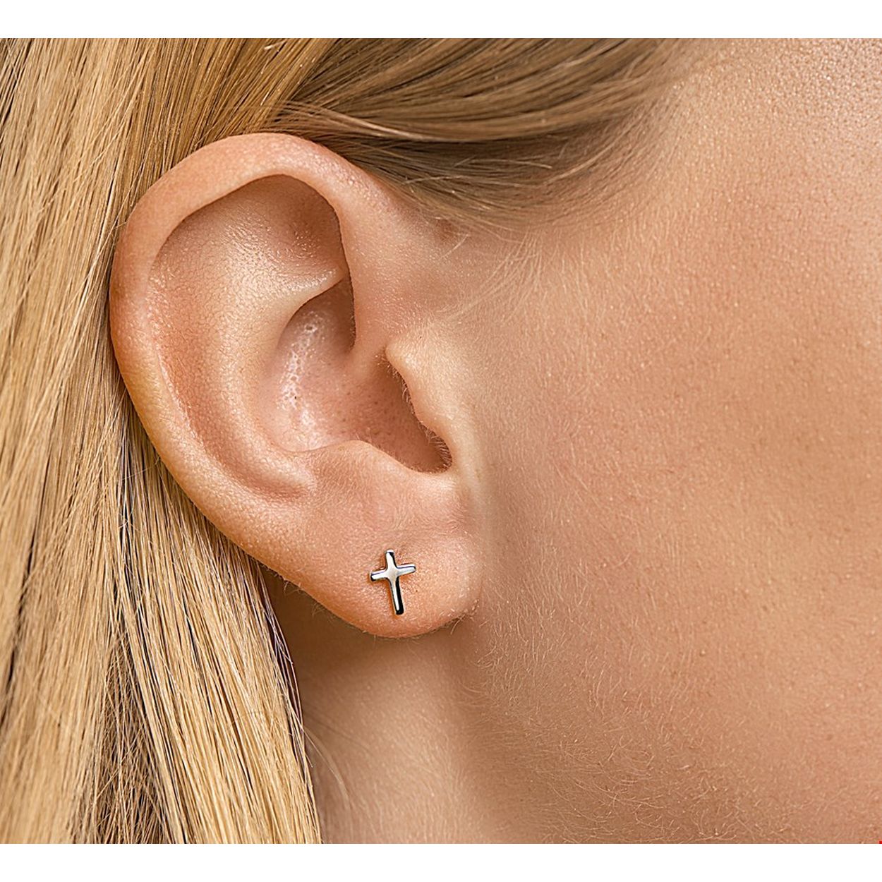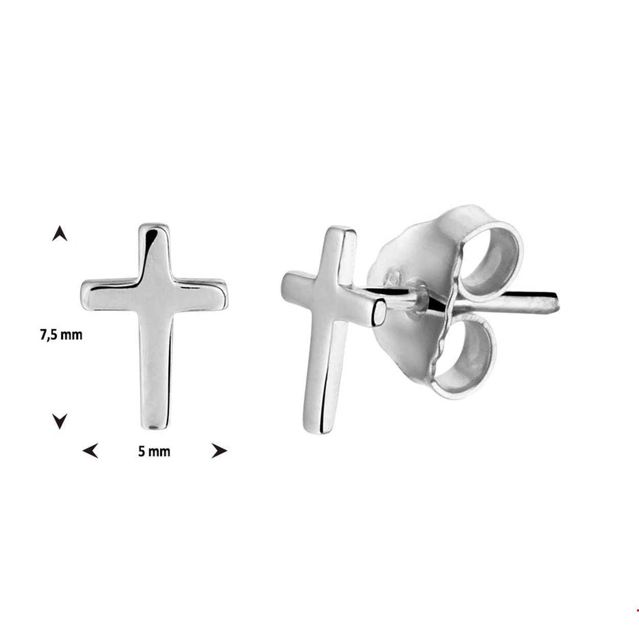 Gerhodineerd zilveren kruis oorknoppen met een afmeting van 7.5x5mm. Info: Gerhodineerd zilver is door de rhodiumlaag beter bestand tegen verkleuren en krassen.