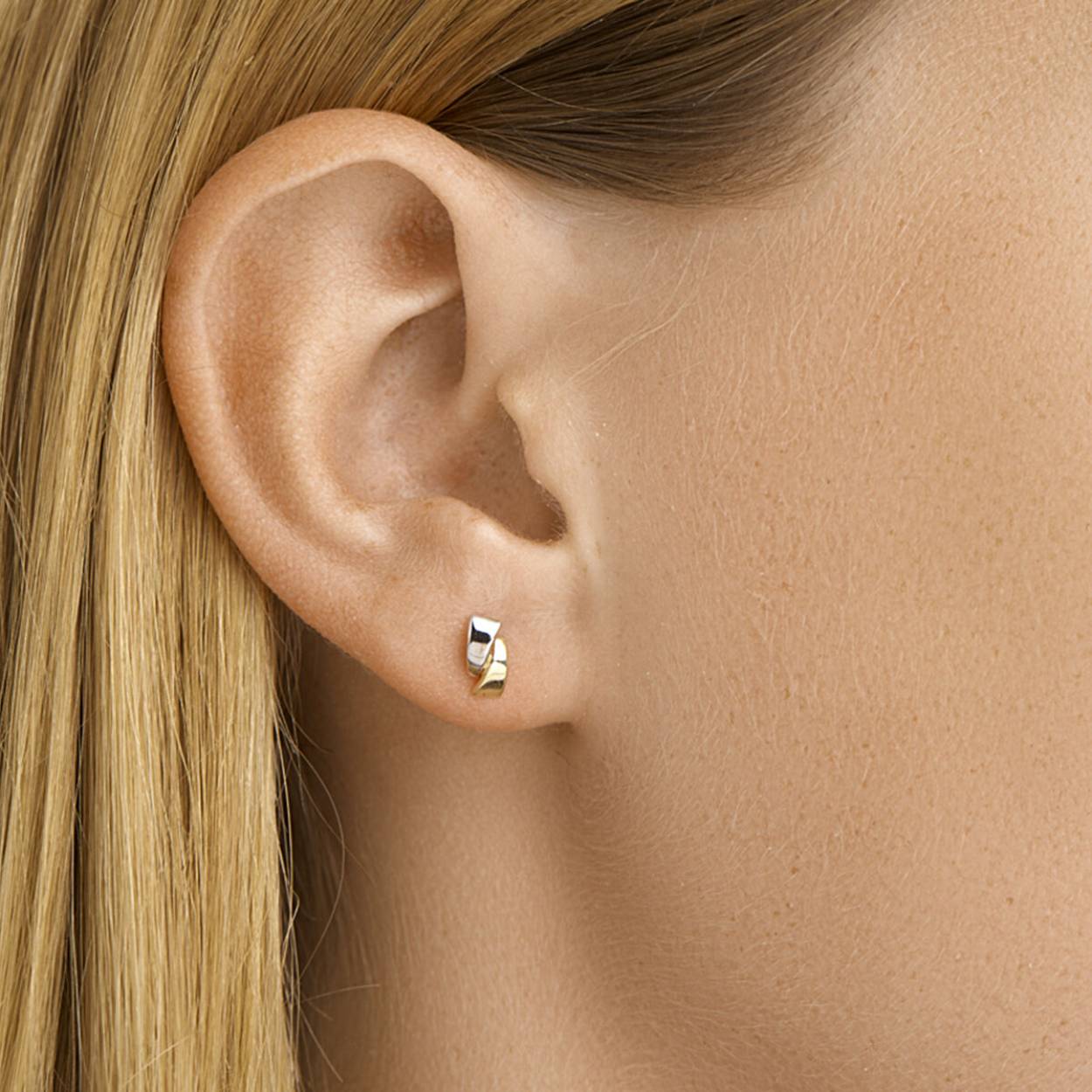 Bicolor wit- en geelgouden oorknoppen met een poli afwerking.