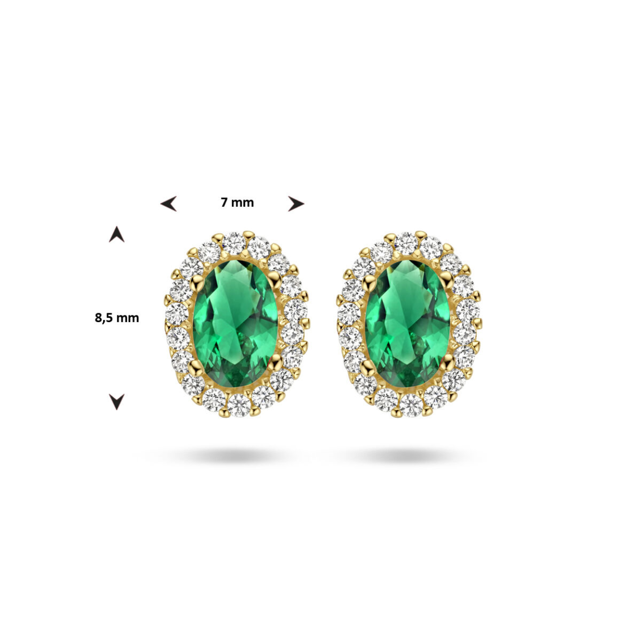 14k Geelgouden oorknoppen uitgevoerd met schitterende groene ziroknia. De oorknoppen hebben een afmeting van maat 8.5x7mm.
