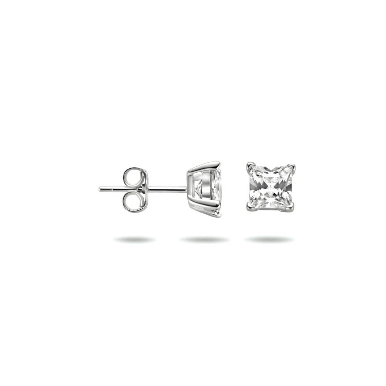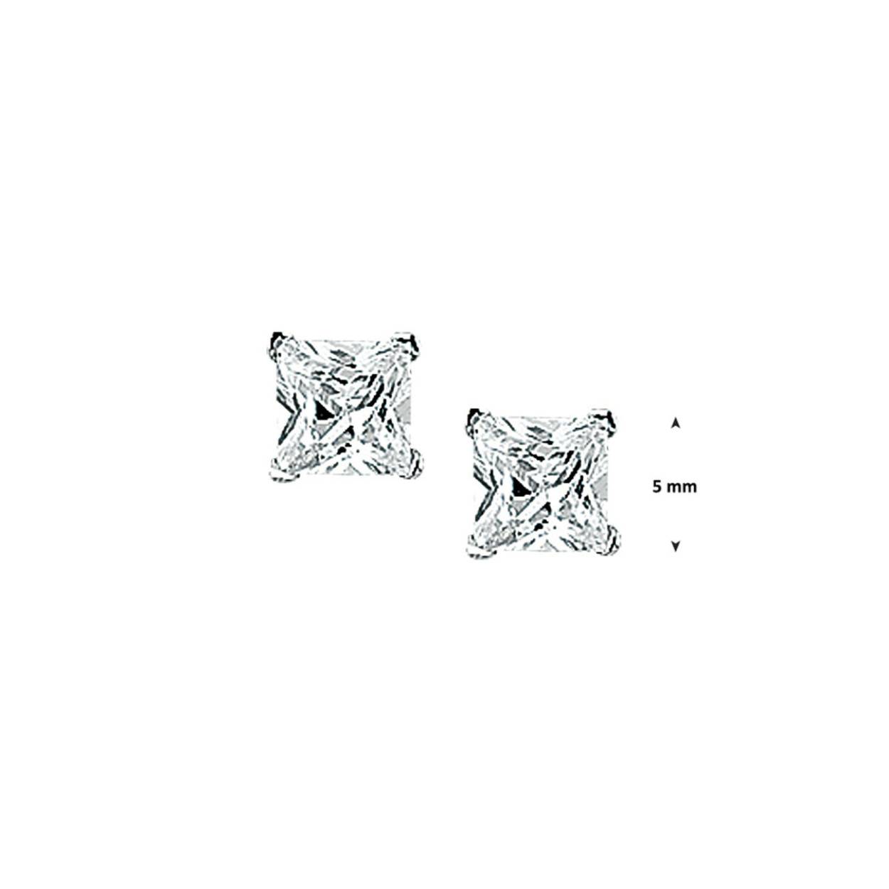 Gerhodineerd  zilveren oorknoppen zirkonia,  5millimeter