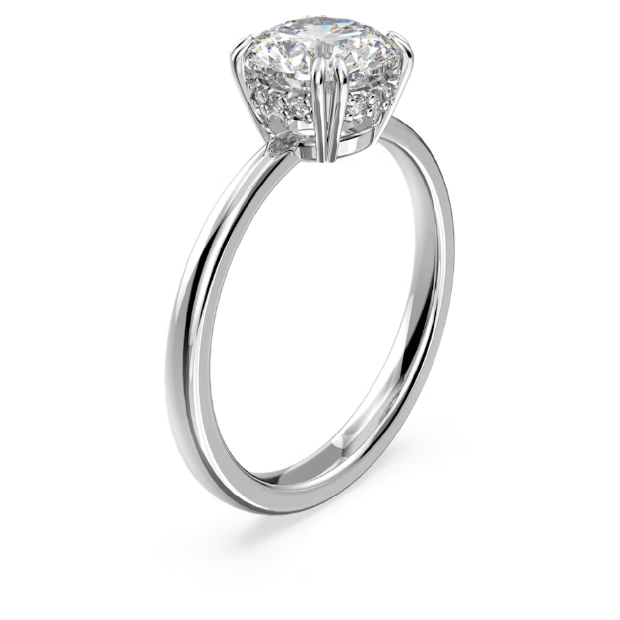 Deze Constella-ring schittert als de eerste ster die aan de nachtelijke hemel verschijnt en wordt gegarandeerd uw nieuwe favoriet. De elegante steen met princess-slijpvorm in een dubbele klauwzetting is voorzien van een rij pavé en is gezet op een band met rodium toplaag. Draag afzonderlijk of combineer met verschillende metaaltinten voor een moderne look.