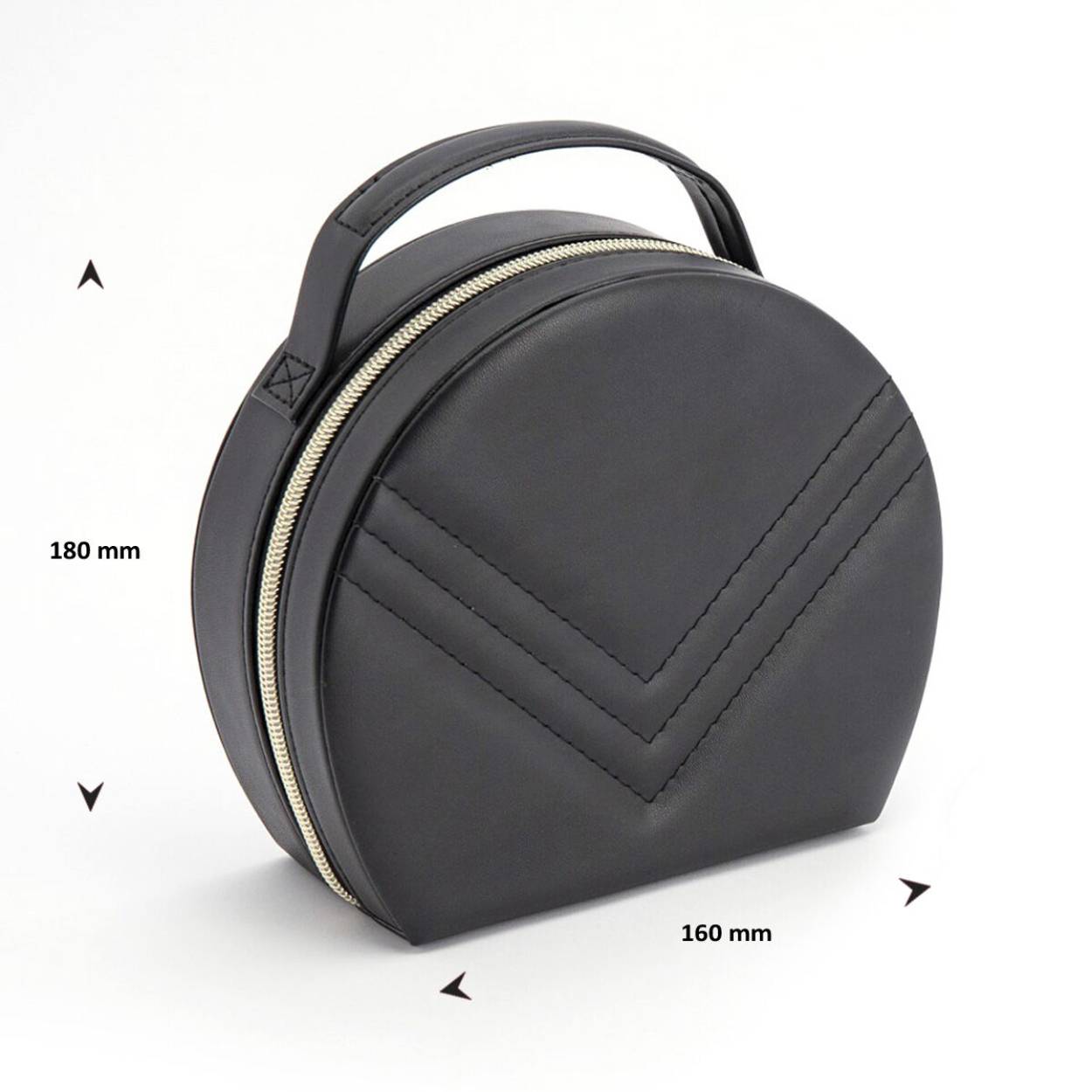 Luxe sieradenbox in de kleur zwart uitgevoerd met een goudkleurige rits sluiting en verschillende vakjes. Een compacte box om verschillende sieraden in op te bergen.