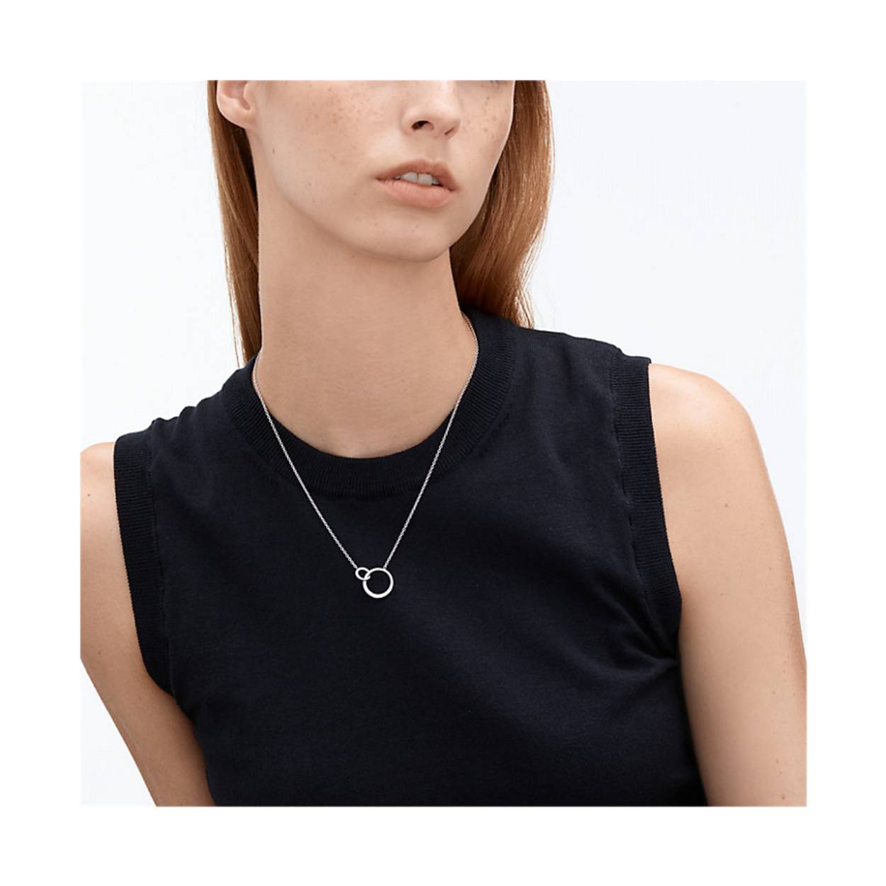 Skagen collier uit de Elin collectie met twee ringen in elkaar. Lengte van het collier is te verstellen van 40-43-47 cm