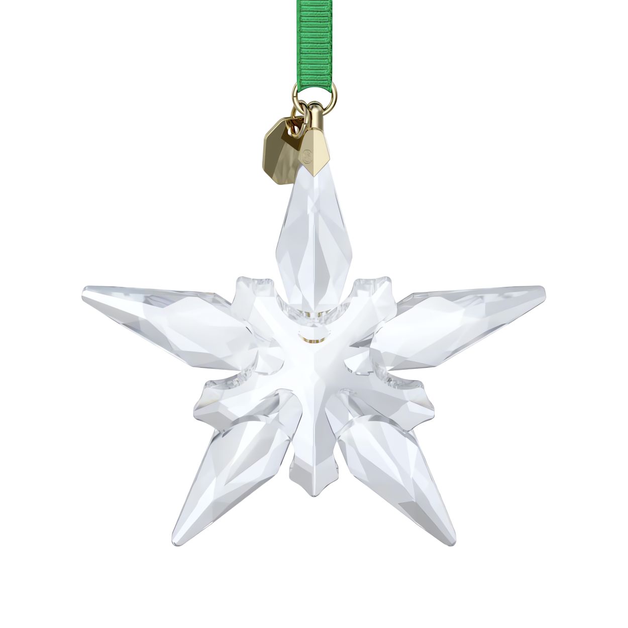 Vier een van de traditionele hoogtepunten van het seizoen met dit Swarovski Annual Edition Ornament. Het stervormige ontwerp aan een groen ripsband lint met champagnegoudkleurige accenten is precisiegeslepen met 170 lichtvangende facetten en belichaamt op prachtige wijze de complexe eenvoud en technische vaardigheid van Swarovski. Het ontwerp is afgewerkt met een gegraveerd label met �2025�. Dit ornament is perfect om in de kerstboom, voor het raam of ergens anders in huis op te hangen en vormt daarmee een werkelijk prachtige manier om uw versiering tijdens de feestdagen te benadrukken. Decoratief voorwerp. Geen speelgoed. Niet geschikt voor kinderen onder de 15 jaar.