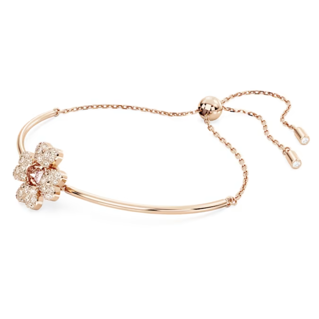 Deze charmante armband uit de Idyllia-lijn geeft elke look een luxe accent. Het ontwerp met de roségoudkleurige toplaag hangt aan een ketting met een aanpasbare sluiting en heeft een klavertje vier-motief dat is vervaardigd met een centrale roze Swarovski Zirkonia en vier blaadjes, gedecoreerd met een pavé van heldere kristallen. Combineer met een paar Idyllia-oorbellen met klavertjes voor een op de natuur geïnspireerde look.