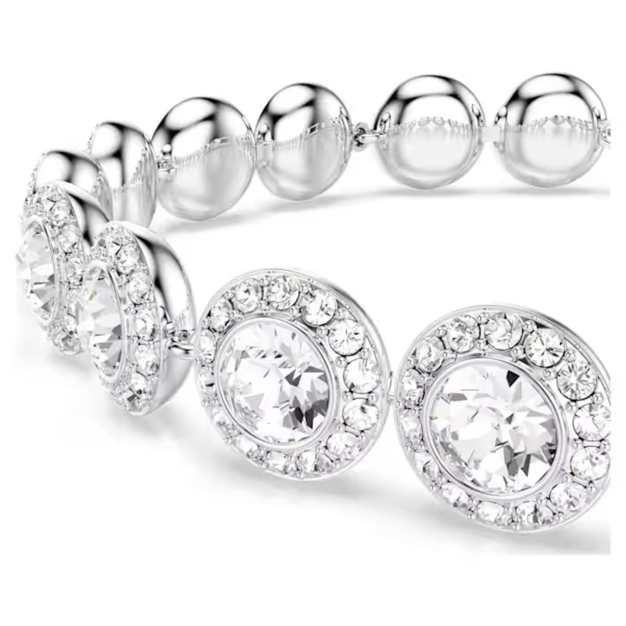 Wikkel uw pols in licht met deze opvallende Una-armband. Het ontwerp met ruthenium toplaag heeft afzonderlijke schakels die elk bezet zijn met een briljant kristal in het midden en een ring van kleinere kristallen in Round-slijpvorm. Een bijzonder elegante keuze die gecombineerd kan worden met bijpassende stukken uit dezelfde lijn.
