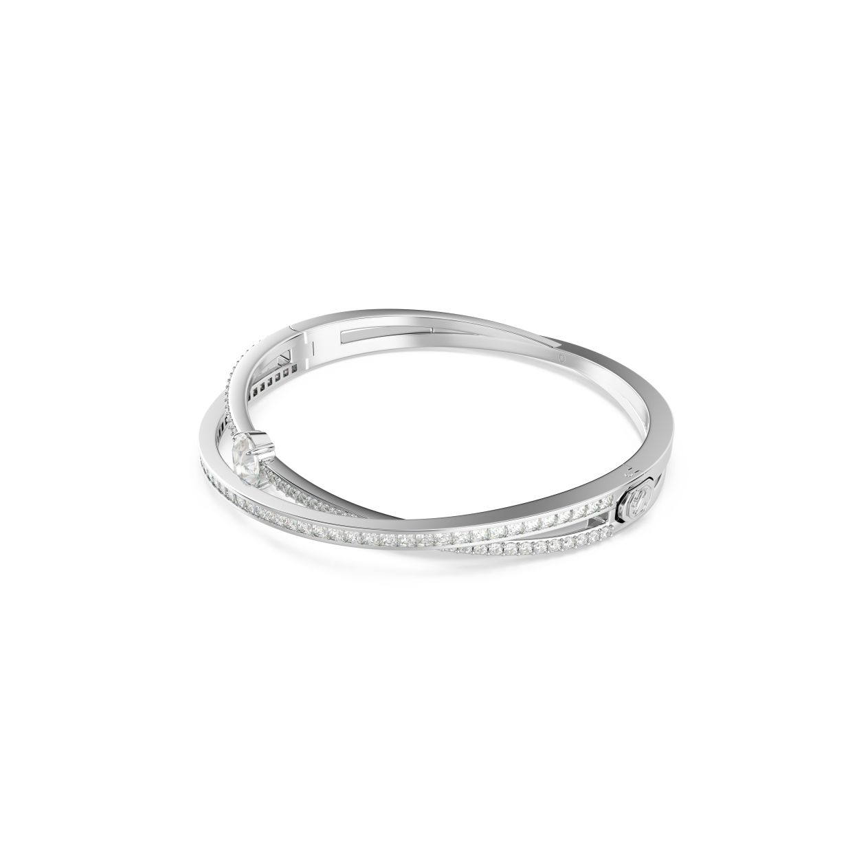 Deze gedraaide Hyperbola-armband is een ontwerpwonder. De twee overlappende banden met rhodium toplaag zijn bezet met heldere Swarovski Zirkonia in sponning- en klauwzetting. Hiertussen is een extra kristal in Oval-slijpvorm geplaatst voor extra impact. Stijl dit complexe sieraad met een minimalistische outfit om de schoonheid van contrast te benadrukken.