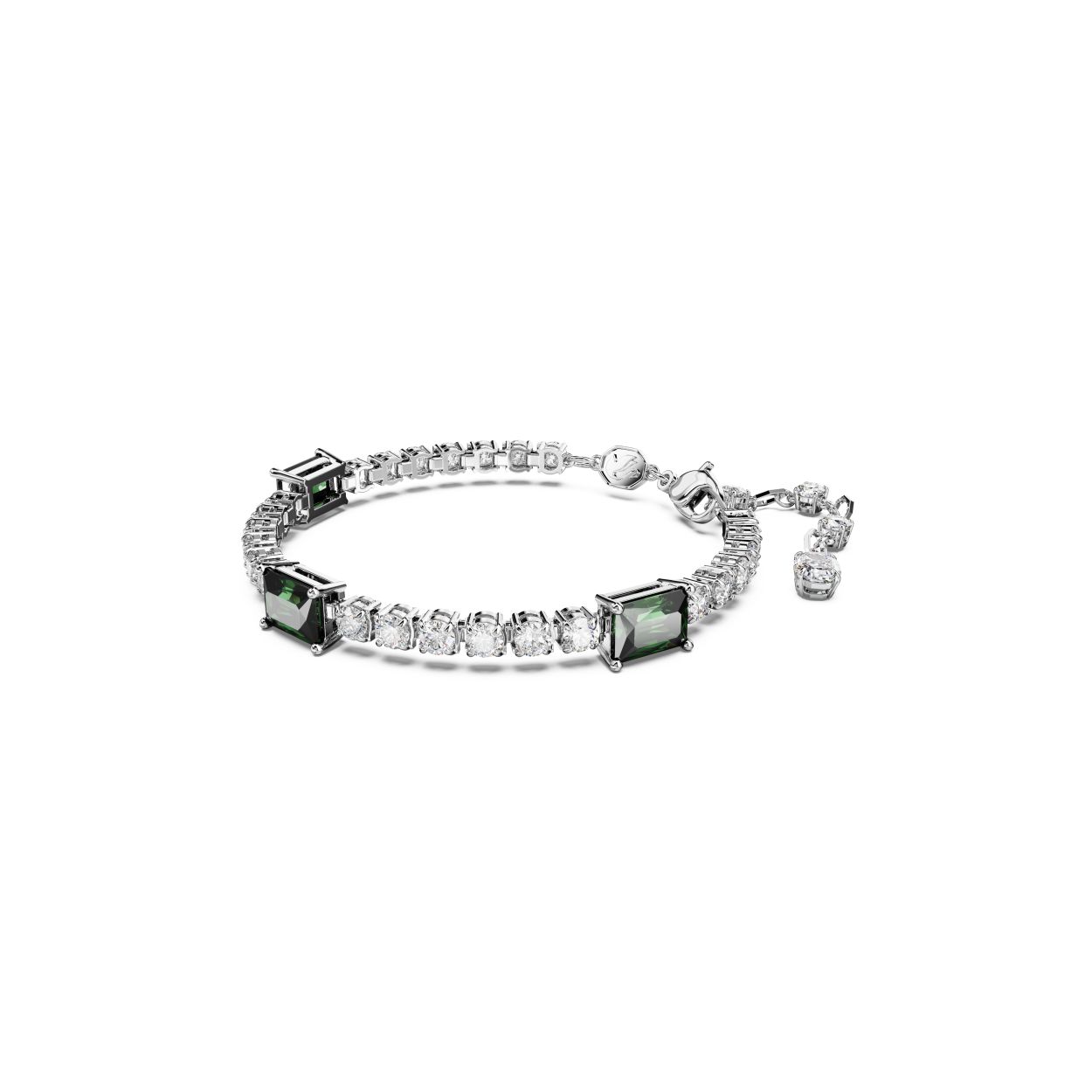 Deze stralende Matrix-tennisarmband heeft een ontwerp dat vanuit elke hoek schittert. Het all-around ontwerp met heldere ronde stenen wordt aangevuld door rechthoekige stenen in een diepgroene kleur en een zetting met een rhodium toplaag. Het verlengstuk is voorzien van verschillende schitterende stenen voor extra detail. Maak elke gelegenheid speciaal met dit elegante sieraad dat u kunt blijven dragen.