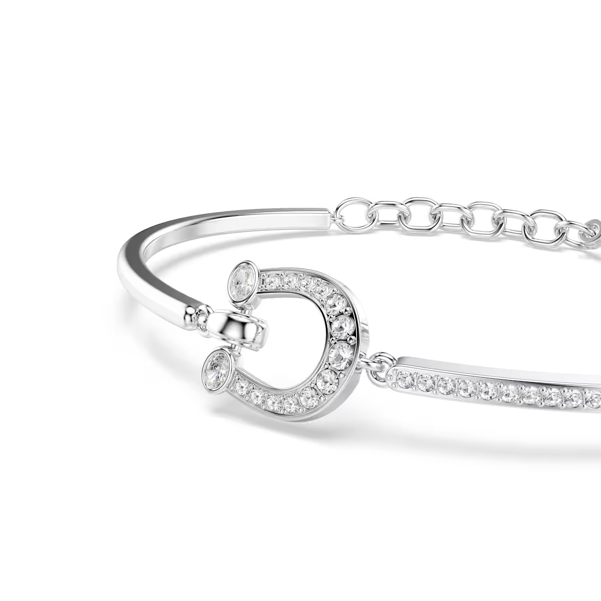 Deze armband met rhodium toplaag symboliseert ambitie en momentum en is voorzien van een hoefijzer in het midden, terwijl de gelede band een verstelbare ketting bevat voor een comfortabele en persoonlijke pasvorm. Draag deze armband als uw eigen geluksbrenger of geef hem cadeau als inspiratie voor snel succes.