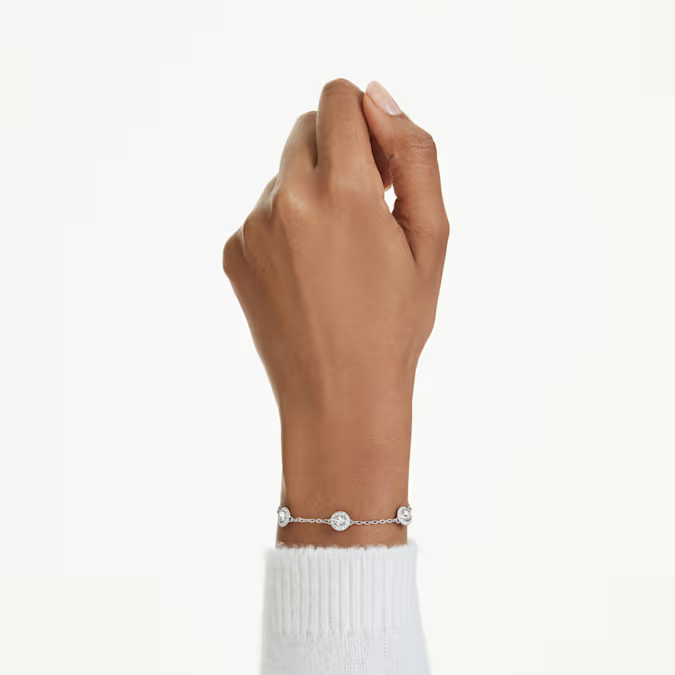 Deze innovatieve Swarovski-armband is gemaakt voor speelse veelzijdigheid. De ketting met rhodium toplaag is voorzien van een schuifmechanisme voor een gemakkelijk verstelbare pasvorm en is versierd met drie dubbelzijdige motieven. Keer de armband eenvoudig om voor een andere weergave van kristallen in Round-slijpvorm. Combineer de armband met andere Una Angelic-stukken voor een ultiem stralende look.