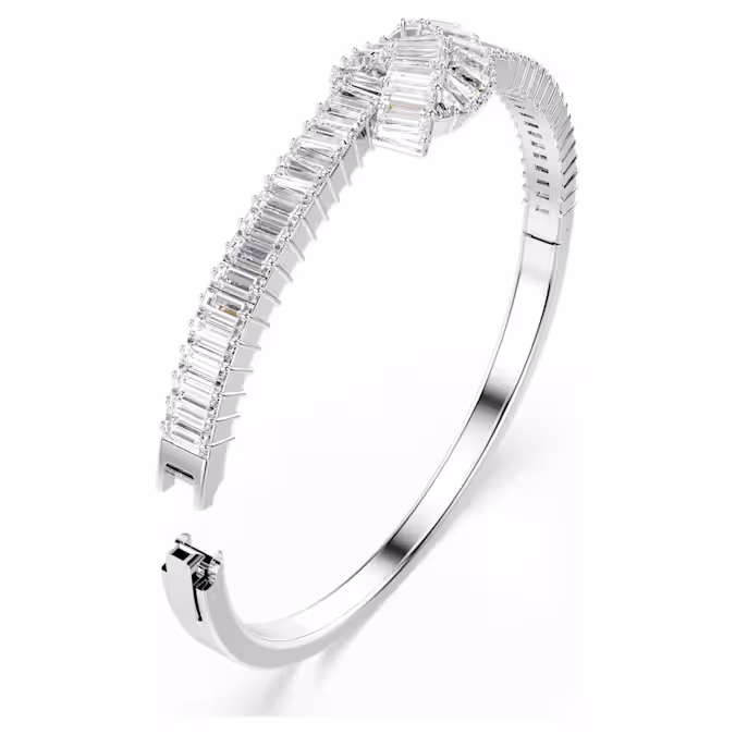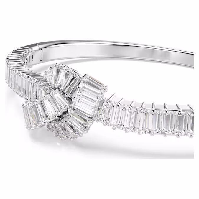 Deze Swarovski-armband is ingenieus vastgeknoopt tot een dramatische wirwar van licht. Het door linten geïnspireerde ontwerp heeft een rhodium toplaag en is voorzien van een verfijnde versiering van Swarovski Zirkonia in baguette-slijpvorm, elk geplaatst in een klauwzetting. Deze artistieke armband maakt een stralend statement rond de pols en kan worden gecombineerd met andere bijpassende sieraden voor een gecoördineerde look.