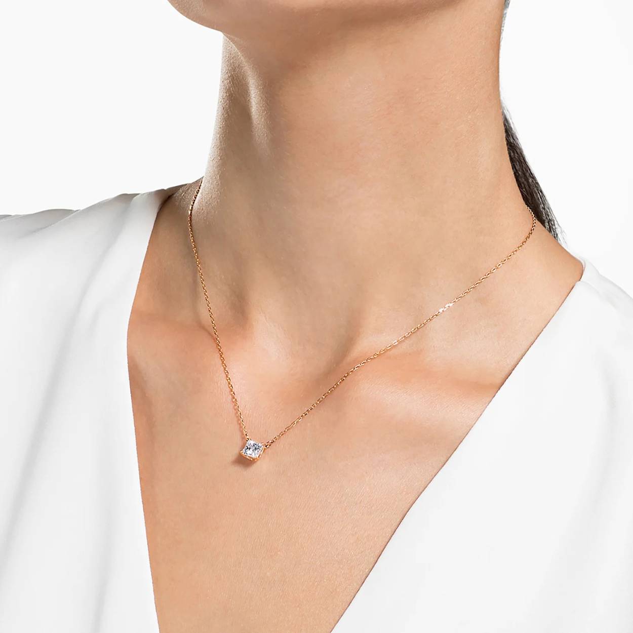 Ga voor chique en eenvoudig met de Attract-ketting. Het tijdloze en elegante ontwerp met roségoudkleurige toplaag is voorzien van een prachtige vierkante steen. Deze ketting voor alle gelegenheden is een onmisbaar item voor elke sieradencollectie en ideaal om cadeau te geven. Hij is gemakkelijk te combineren met andere sieraden van Swarovski.