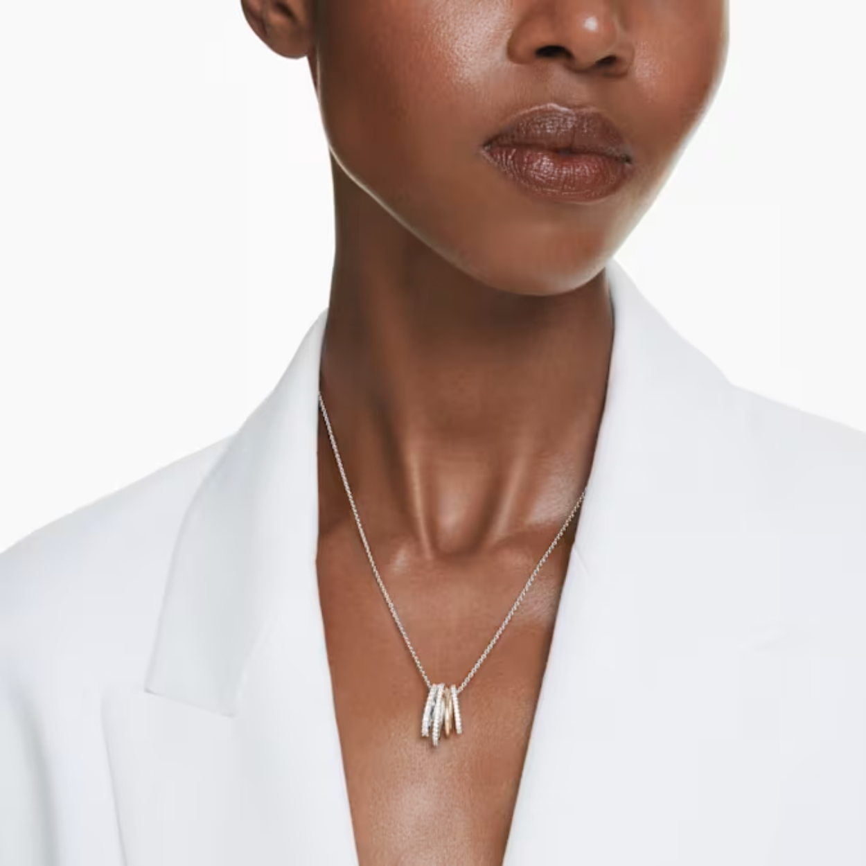 Deze opvallende Hyperbola-hanger combineert meerdere tinten en technieken om een onderscheidende kijk op verfijnde luxe te creëren. Aan een elegante ketting hangen vier miniringen voorzien van een goudkleurige en rhodium toplaag. Hierin prijken Swarovski Zirkonia in Round- en Square-slijpvorm in een klauwzetting. Draag jet met een bijpassende armband of oorbellen voor maximale glamour.