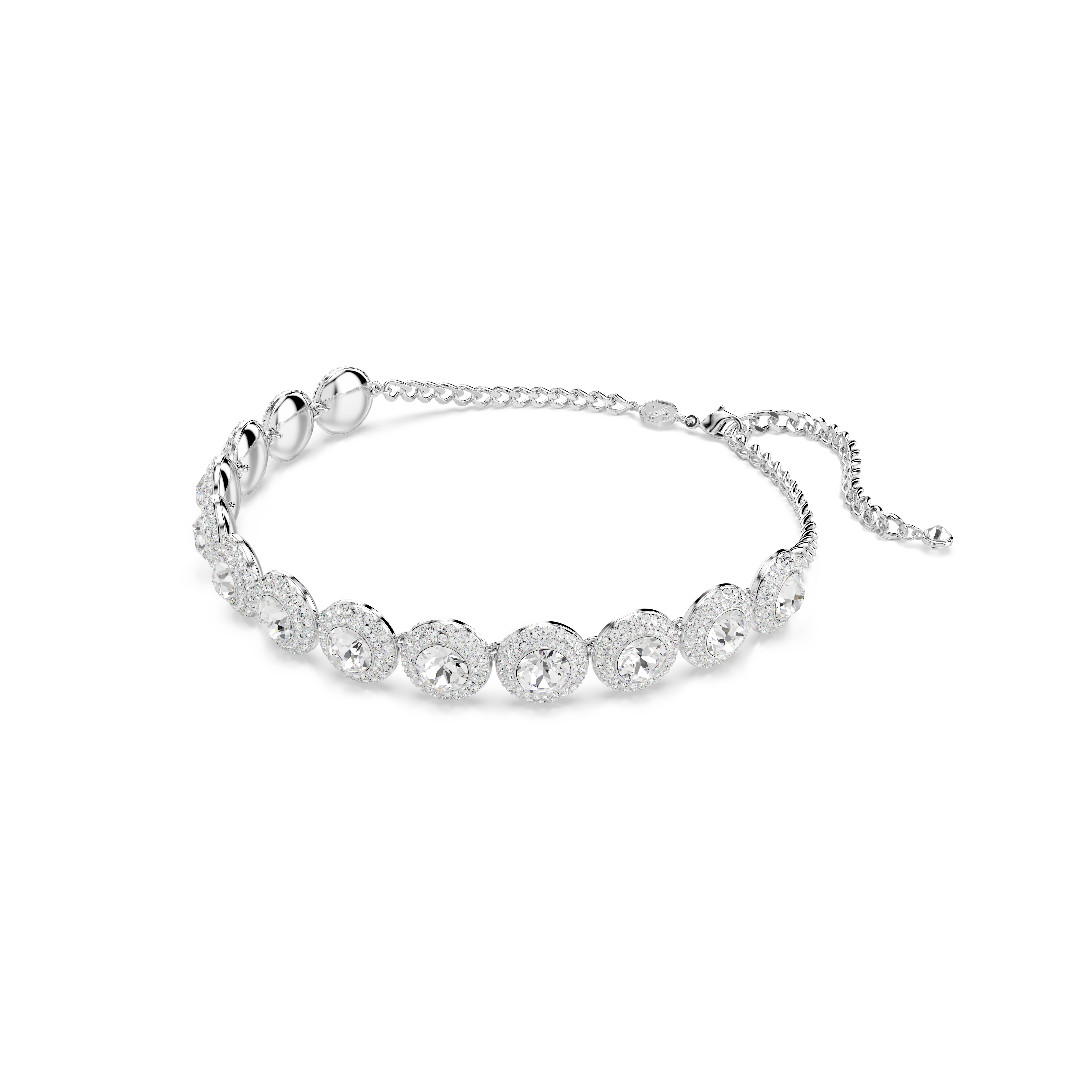Druk de elegante kant van uw stijl uit met deze choker met rhodium toplaag. De ketting heeft een karabijnsluiting en is versierd met glinsterende engelmotieven, wat zorgt voor een betekenisvolle look van sereniteit en verfijning. Combineer hem met andere Una Angelic-sieraden om uw outfit op elkaar af te stemmen.