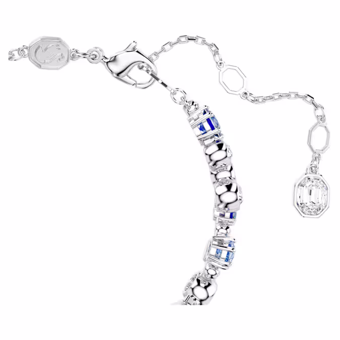 Wikkel uw pols in licht dankzij deze levendige Constella-armband. Het ontwerp met rhodium toplaag is volledig bezet met heldere kristallen en blauwe Swarovski Zirkonia in diverse formaten en tinten, elk in een klauw- of lunettezetting. Deze glanzende armband met karabijnsluiting geeft een verfijnde afwerking aan elke outfit en kan worden gedragen met de bijpassende ketting.