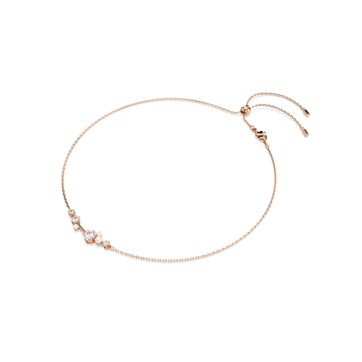 Uw stijl bereikt de sterren met deze veelzijdige Constella-creatie. Het ontwerp met rosegoudkleurige toplaag is voorzien van een speciaal trekmechanisme, waardoor u het sieraad als halsketting of choker kunt dragen. Aan de voorkant lijken de Swarovski Zirkonia en Swarovski Crystal Pearls in verschillende formaten te zweven tussen de discrete aansluitpunten. Het geheel heeft een kosmisch effect. Speel met de verschillende stylingmogelijkheden en draag hem samen met een bijpassende ring voor eindeloze weerspiegelingen van licht.