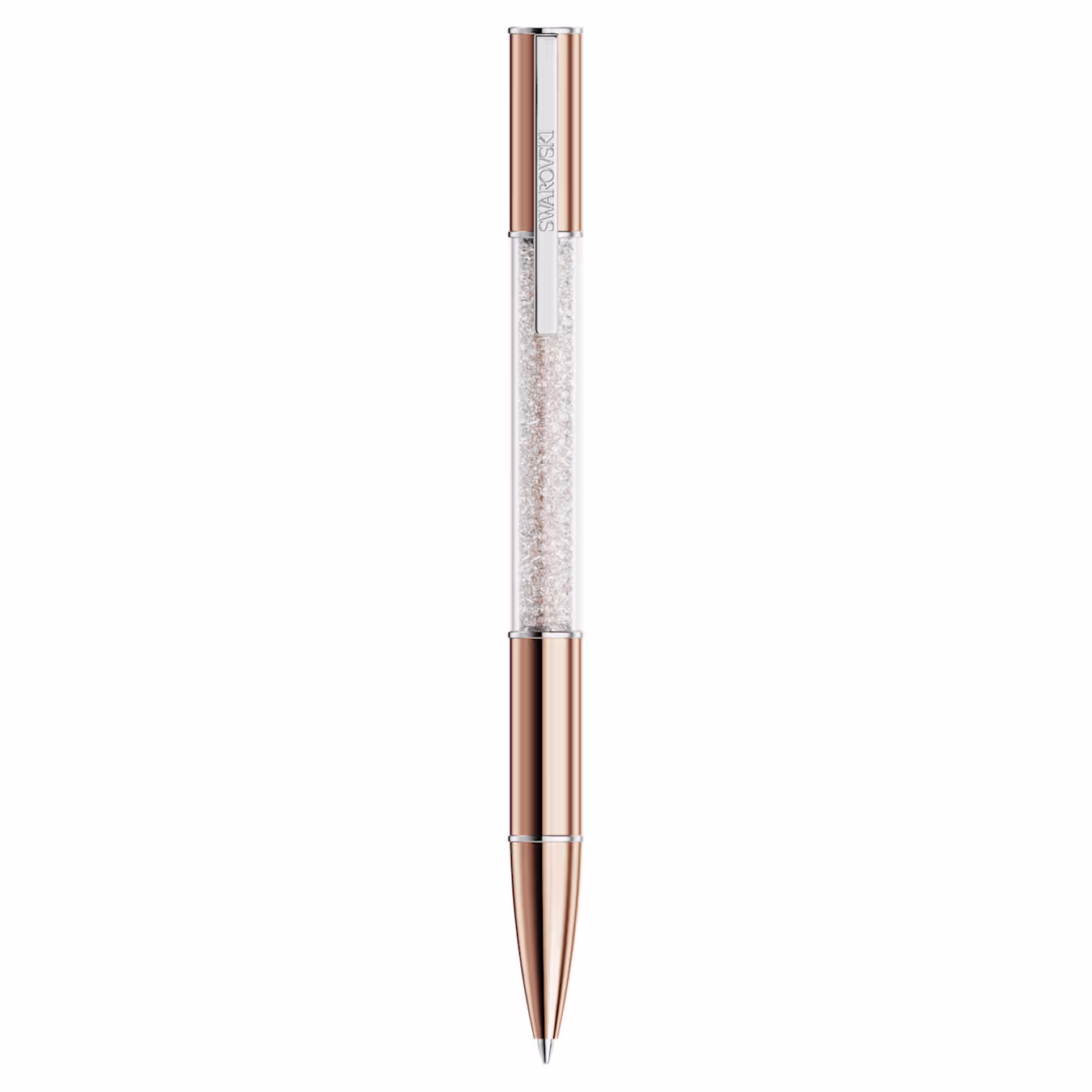 De Crystalline Lustre balpen is geïnspireerd op een luxueuze stijl. Dit bijzondere schrijfinstrument heeft een ronde houder met een roségoudkleurige toplaag en chromen accenten, waaronder een functionele clip met daarop de naam Swarovski gegraveerd. In het midden van dit oogverblindende ontwerp schitteren ongeveer 480 Swarovski-kristallen, elk nauwkeurig geplaatst met behulp van de iconische Crystalline-techniek. Een opvallende aanvulling op uw bureau of een bijzonder cadeau voor de schrijvers in uw leven. Zwarte en blauwe inktvullingen zijn verkrijgbaar in de Swarovski-winkels.