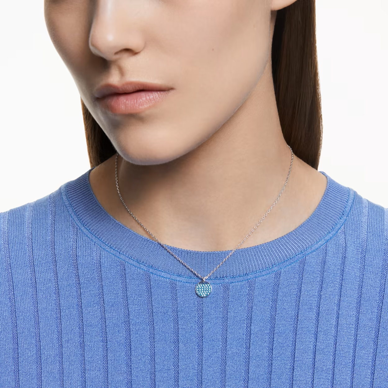 Deze cirkelvormige hanger is elegant en veelzijdig, en wordt gegarandeerd uw nieuwe favoriet. Het sieraad bevat een perfecte cirkel met schitterend aquamarijnblauw kristalpavé en een zetting met rodium toplaag. Draag afzonderlijk of combineer voor een opvallende look die de moeite waard is.