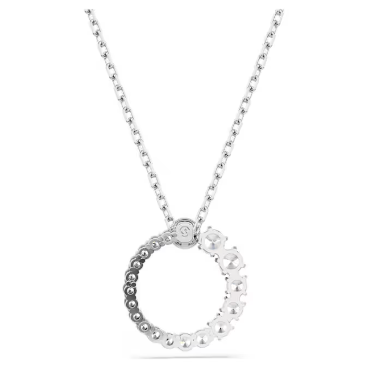 Met zijn klassieke silhouet en eigentijdse details zal deze elegante Matrix-hanger absoluut de aandacht trekken. Het sieraad met rhodium toplaag hangt aan een delicate ketting en bestaat uit een ring bezet met heldere Swarovski Zirkonia in een verloop van klein tot groot. In het midden prijkt een witte Swarovski Crystal Pearl. Draag dit sieraad alleen of combineer het met bijpassende oorbellen voor een meer dramatische look.