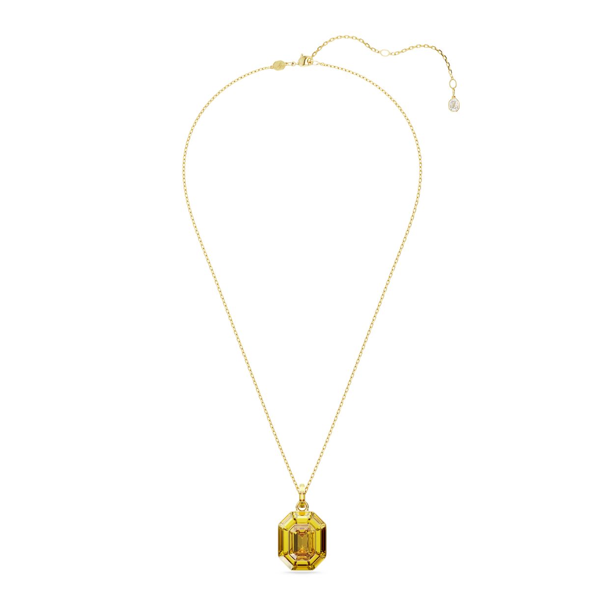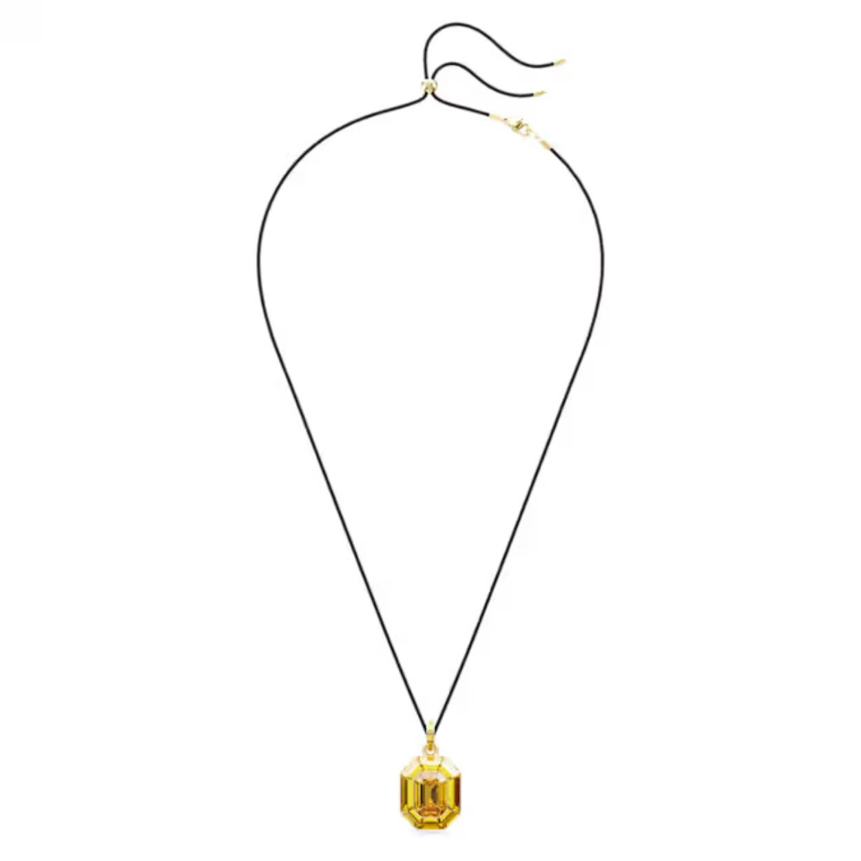 De Lucent-hanger straalt als de zon, waarmee u uw stijl een flinke dosis extra kleur en licht geeft. Het ontwerp bestaat uit een volledig geslepen gele kristal, waarvan de facetten vakkundig zijn geslepen in Swarovski's iconische achthoekige vorm. Deze is bevestigd aan een hanger met kleine gele kristallen in de Baguette-slijpvorm. Deze zeer veelzijdige hanger kan worden gedragen aan een metalen ketting of een delicaat zwarte stoffen koord, met een verstelbaar schuifmechanisme, waardoor u verschillende stylingmogelijkheden heeft. Combineer deze hanger met de bijpassende gele sieraden uit de Lucent-familie of verpak hem als een stralend cadeau.