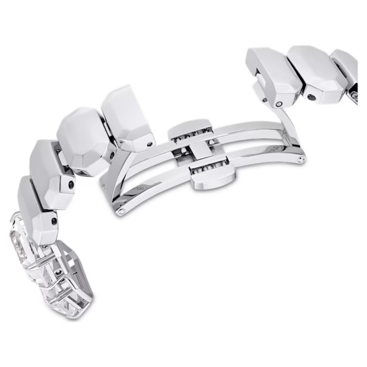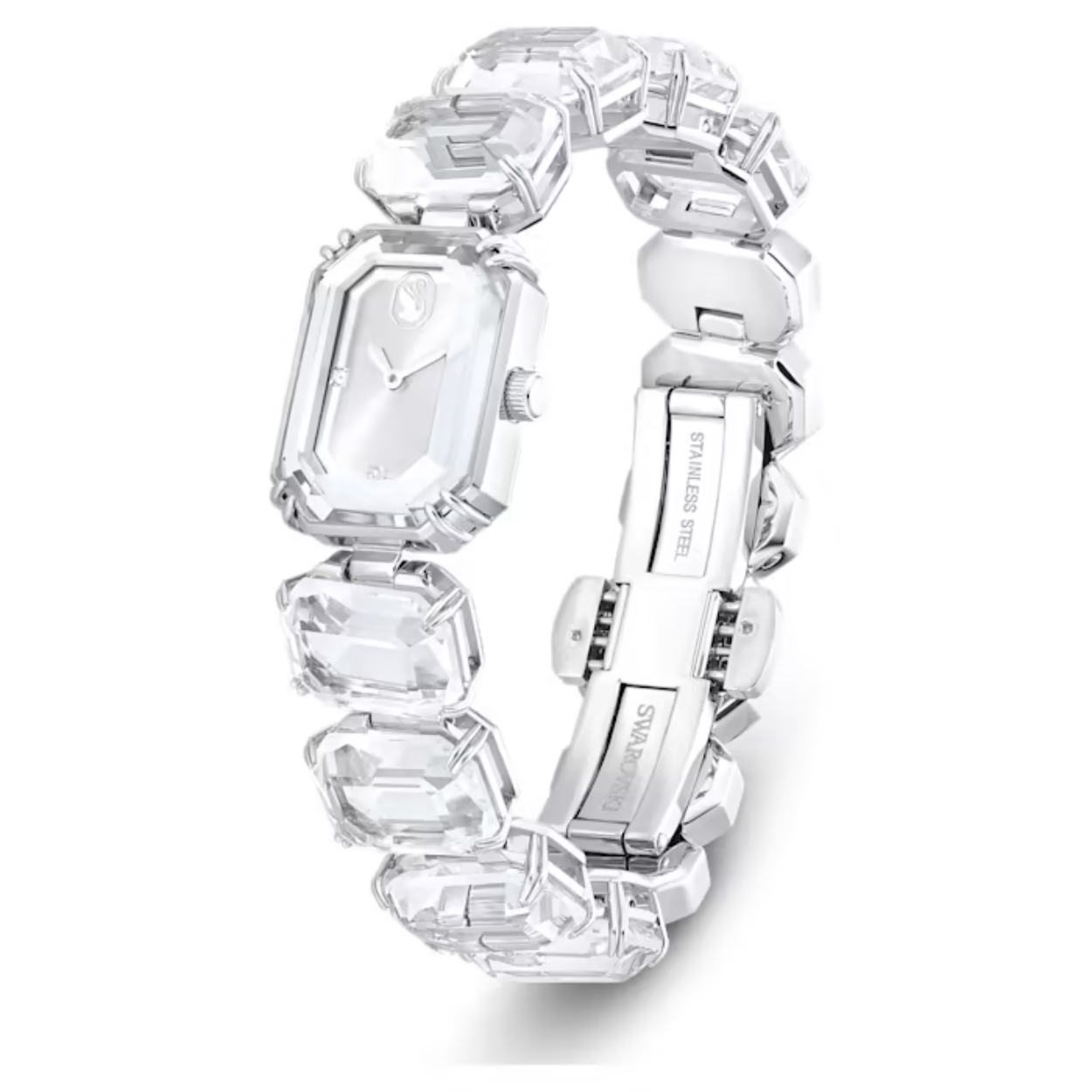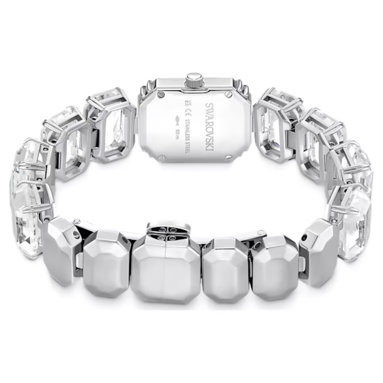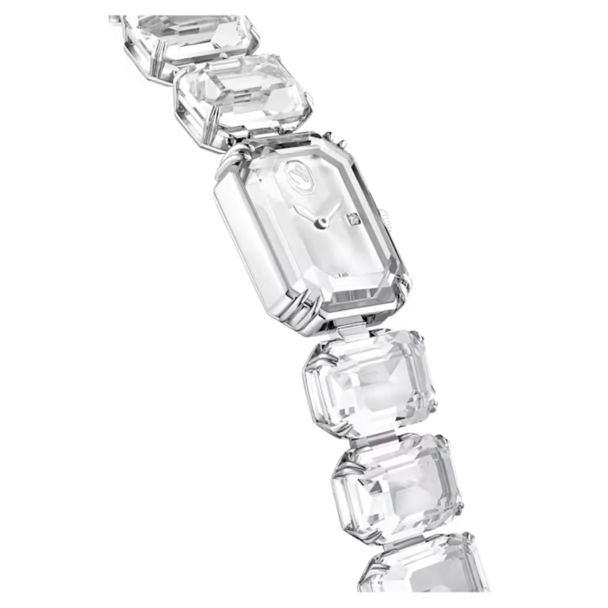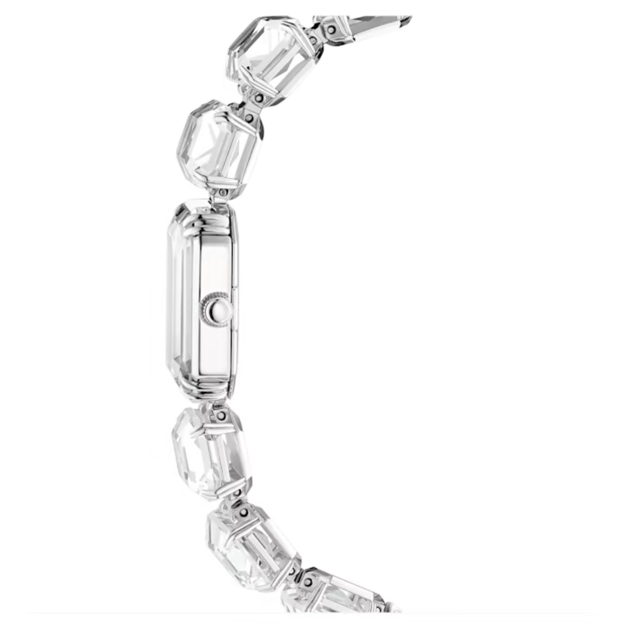 Dit opvallende horloge is geïnspireerd op de Millenia-lijn en maakt uw dagelijkse outfit direct speciaal. Het vakkundig vervaardigde ontwerp met een rij heldere kristallen met octagon-slijpvorm bevat een saffierblauwe glazen middenstuk en een roestvrij stalen afwerking. Het sieraad is waterbestendig tot 50 m. Dit elegante horloge is ideaal om afzonderlijk of in combinatie met andere sieraden te dragen.