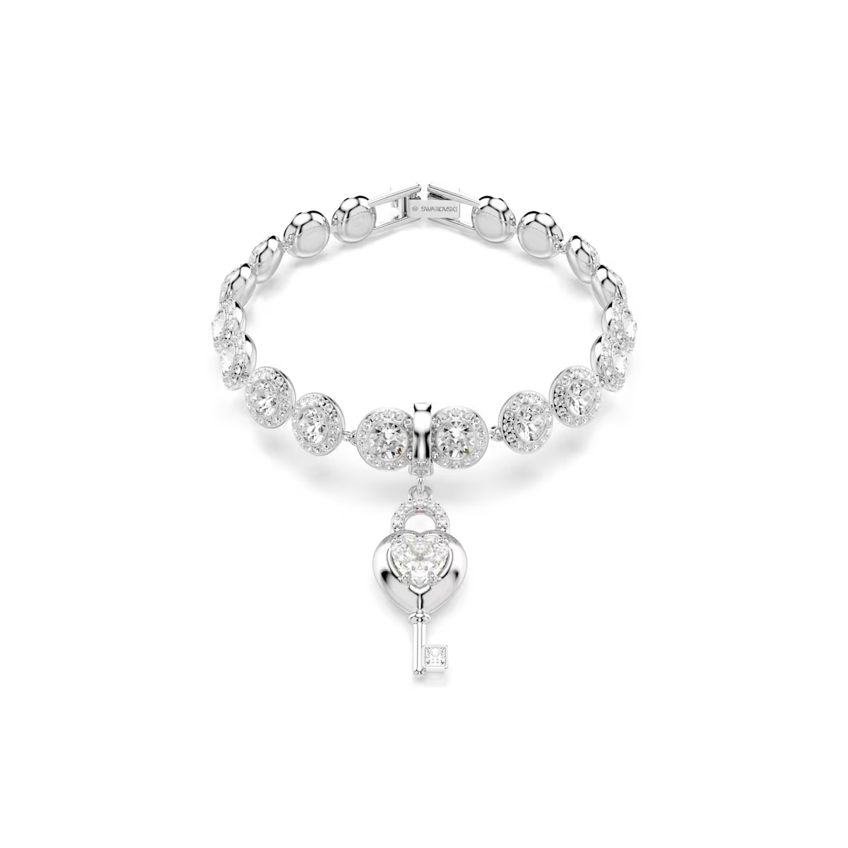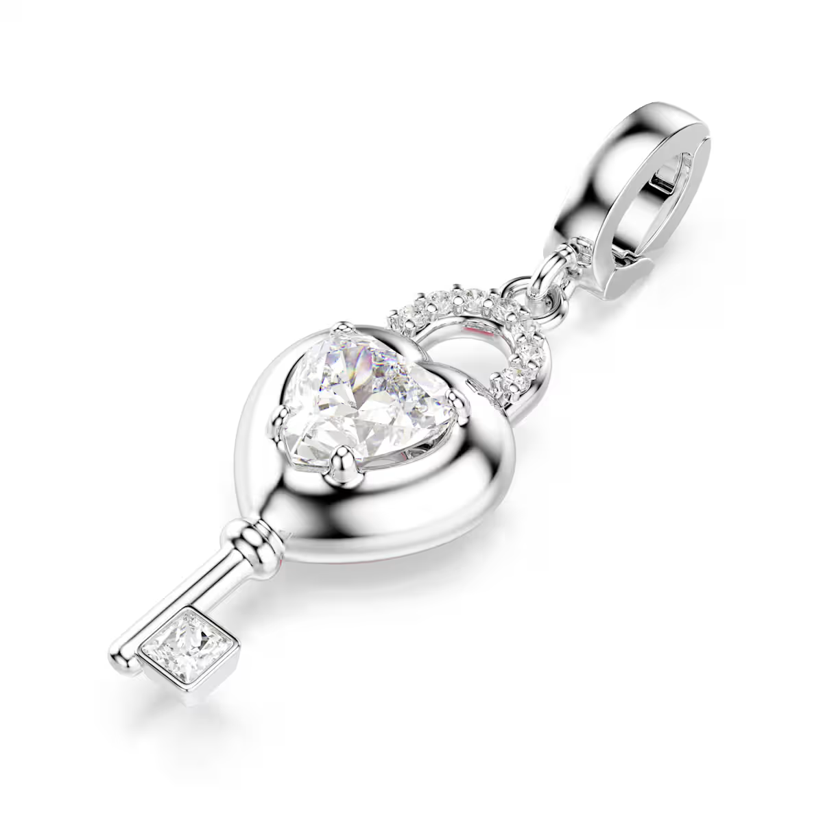 Swarovski-bedels geven een persoonlijke touch aan uw dagelijkse stijl en zijn compatibel met meerdere sieraden uit de Matrix-, Una- en Idyllia-families. Deze op een medaillon geïnspireerde hart- en sleutelbedel is een ideale keuze voor mensen met een romantische ziel. Het ontwerp met rhodium toplaag is versierd met een centrale Swarovski Zirkonia en voorzien van een innovatieve sluiting, waardoor u de bedel aan verschillende kettingen en armbanden kunt dragen.