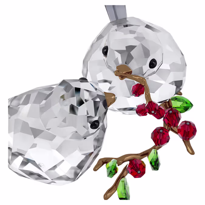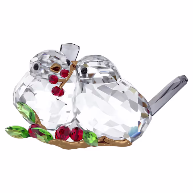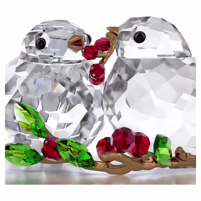 Uit de fantastische Idyllia-tuin komt deze schattige decoratie als een ode aan de liefde en de natuur. Met in totaal 709 facetten en accenten van glanzend bronsgelakt metaal toont de creatie twee kristallen vogels die genieten van een maaltijd van helderrode bessen. De vogels kunnen samen of apart worden geplaatst voor uw eigen unieke display. Decoratieobject. Geen speelgoed. Niet geschikt voor kinderen jonger dan 15 jaar.