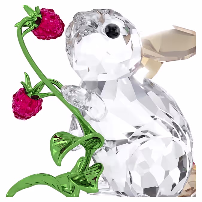 Een lieflijk moment uit de natuur is vastgelegd in deze schattige Idyllia-decoratie. Het ontwerp met in totaal 374 facetten toont een konijn dat aan frambozen knabbelt. Bijzondere details zijn het Golden Shadow-effect dat is gebruikt voor de oren en de staart van het konijn, en de glanzende stengel en bladeren van groen gelakt metaal. Voeg het toe aan uw interieur voor een vleugje delicate vreugde. Decoratieobject. Geen speelgoed. Niet geschikt voor kinderen jonger dan 15 jaar.
