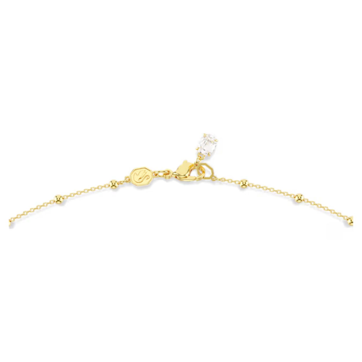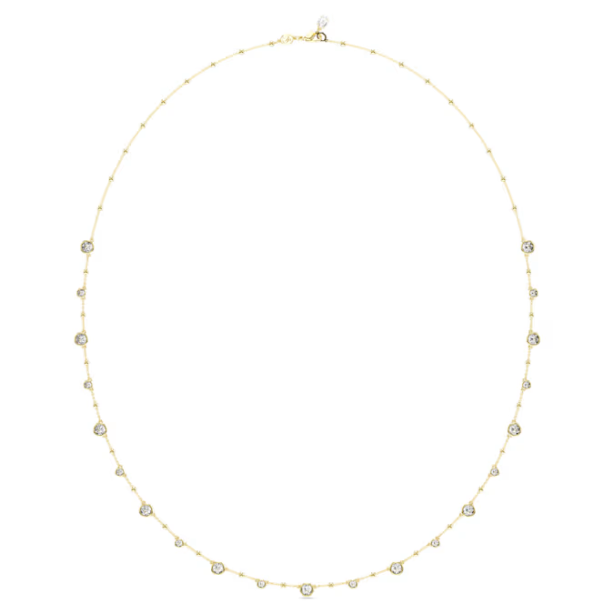 Dit lange sieraad is ideaal om in lagen te dragen en geeft uw stijl een elegante uitstraling. Het ontwerp bestaat uit een ketting met goudkleurige toplaag, die is geaccentueerd met glanzende metalen druppels en schitterende rondgeslepen kristallen in een dikke bezelzetting. In het verlengstuk prijkt een Swarovski Zirkonia voor een extra luxe uitstraling. Een eenvoudige manier om een casual look een luxe accent te geven.