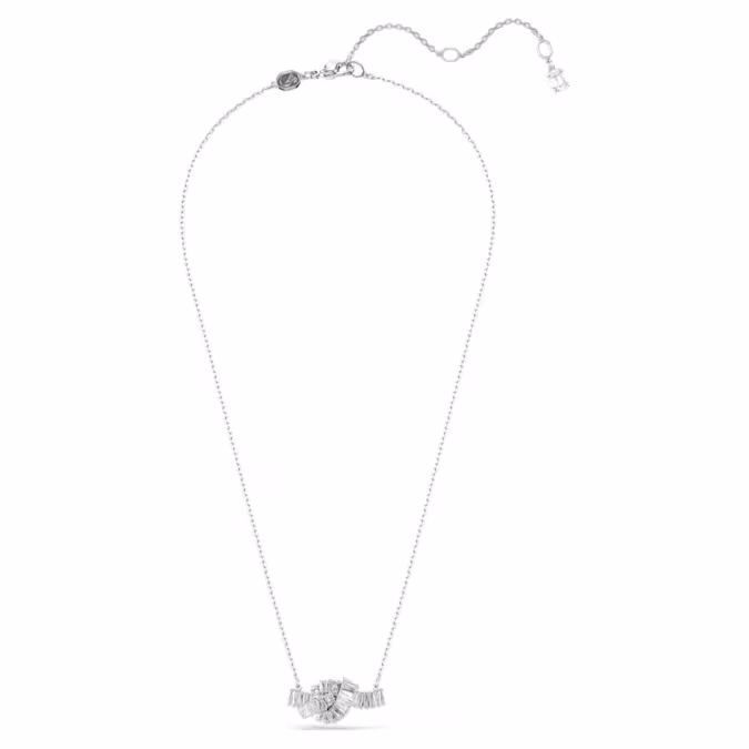 Deze elegante Swarovski-hanger is geknoopt als symbool voor een eeuwige verbinding. Het lintvormige motief hangt aan een delicaat collier, heeft een rhodium toplaag en is voorzien van een verfijnde versiering van Swarovski Zirkonia in baguette-slijpvorm, elk geplaatst in een klauwzetting. Het is een verfijnd sieraad voor elke dag dat prachtig combineert met andere Matrix-creaties.