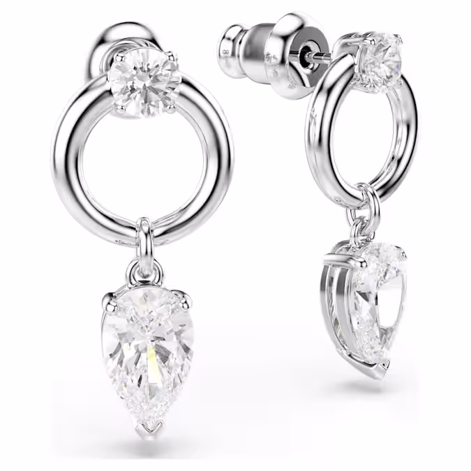 Vang het licht vanuit alle hoeken met deze unieke Mesmera-oorbellen. Elk glinsterend motief is voorzien van een Swarovski Zirkonia in de pear-slijpvorm, die is bevestigd aan een luxueuze ring met rhodium toplaag. In het midden is nog een Swarovski Zirkonia in ronde slijpvorm geplaatst. Draag ze samen met de bijpassende hanger om uw eigen adembenemende set te creëren.