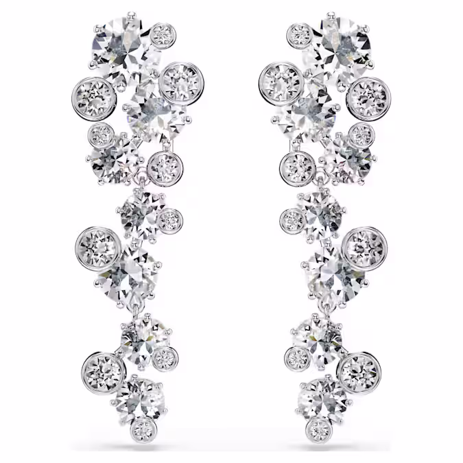 Verlicht uw stijl met deze lichtvangende Constella-oorbellen. Geïnspireerd door een universum van sterren, zijn de strengen met rhodium toplaag voorzien van heldere kristallen in verschillende groottes, elk gepresenteerd in een klauw- of lunettezetting. Draag ze samen met de bijpassende Constella-ketting om de schittering in uw garderobe te maximaliseren.