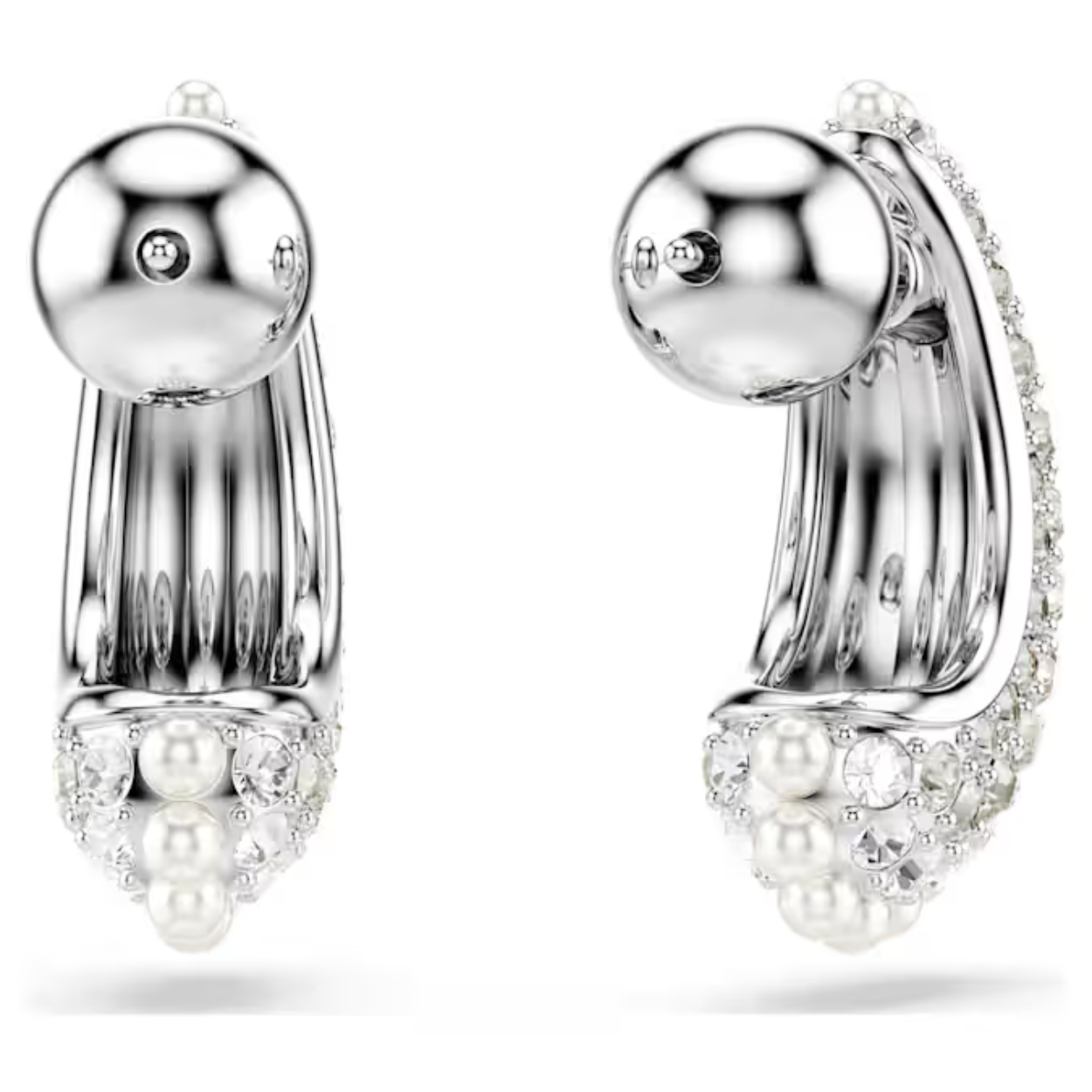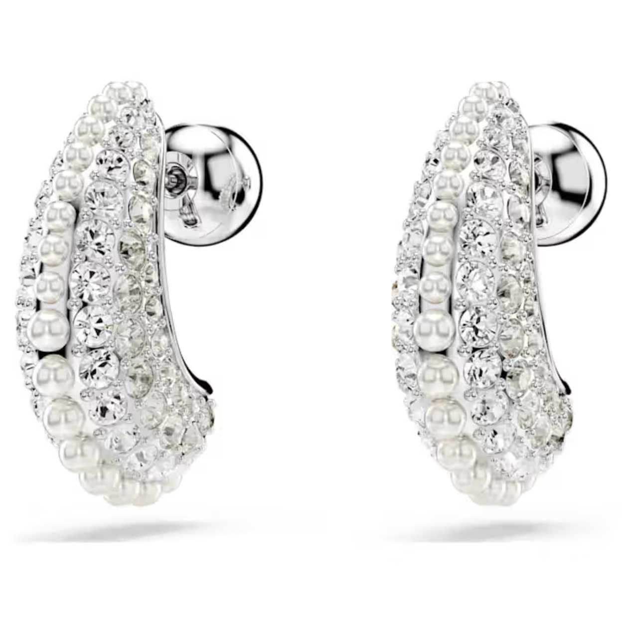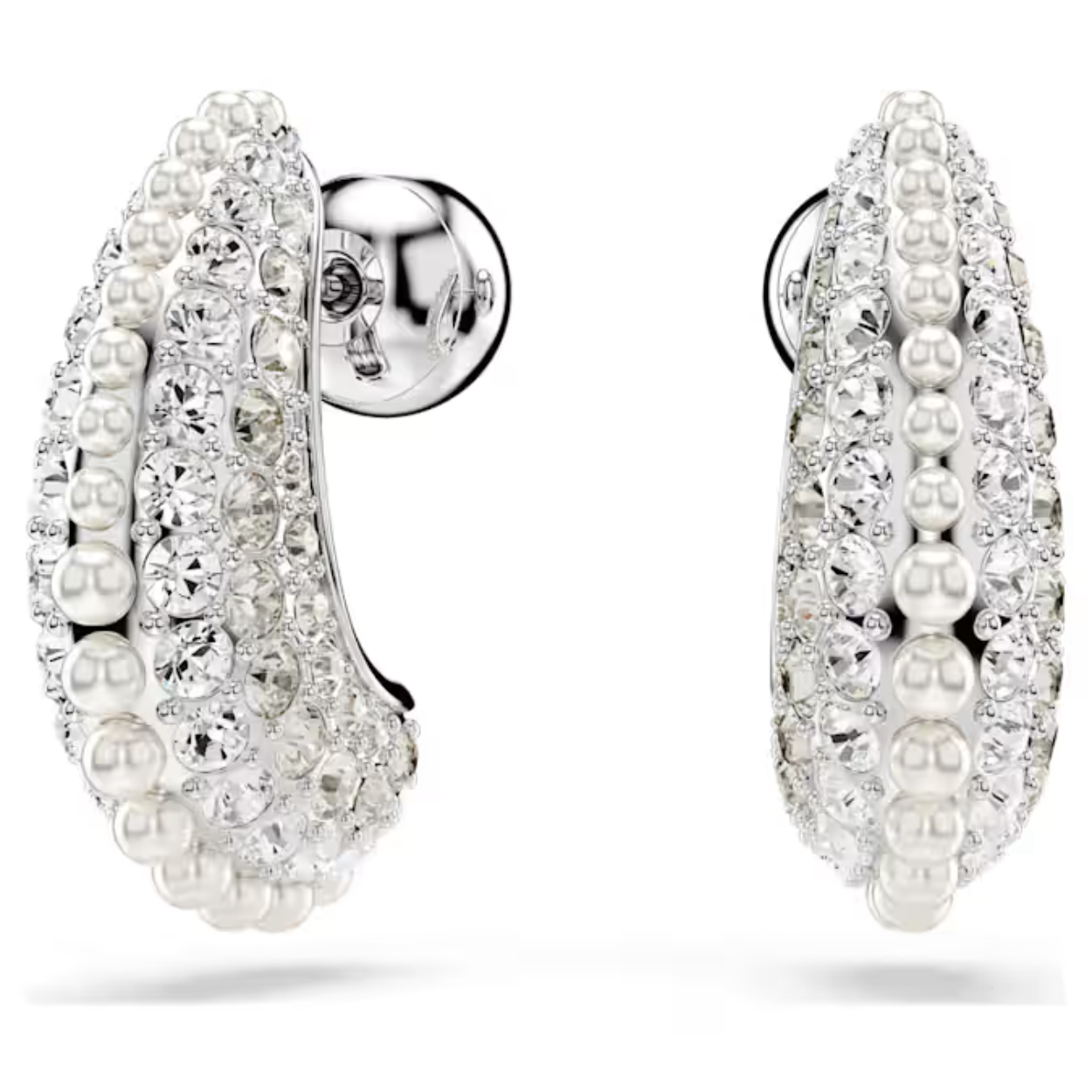 Een betoverend sieraad met een intense schittering. Deze oorstekers met rhodium toplaag hebben een bolle metalen basis voor sensationeel volume en zijn verfraaid met een strook witte Swarovski Crystal Pearls en een pavé van heldere kristallen. Het effect is gedurfd en inspireert eindeloze stylingmogelijkheden in combinatie met andere Sublima-sieraden.
