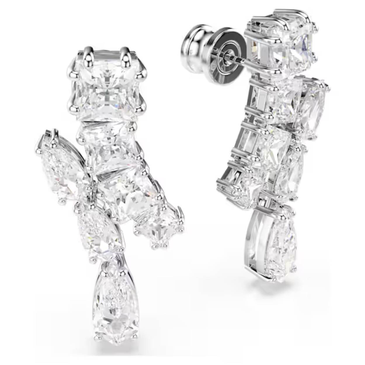 Deze dynamische oorstekers schitteren met een energieke uitstraling. De sieraden met rhodium toplaag zijn bezet met een verscheidenheid aan Swarovski Zirkonia in verschillende slijpvormen in klauwzetting. Het opvallende hangende element zorgt ervoor dat het licht vanuit elke hoek wordt weerkaatst. Combineer deze set met een bijpassende Matrix-hanger voor een elegante look voor elke dag.