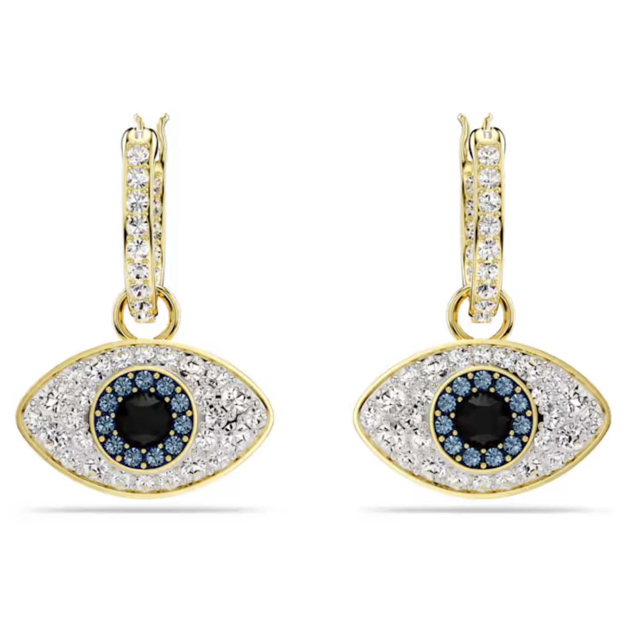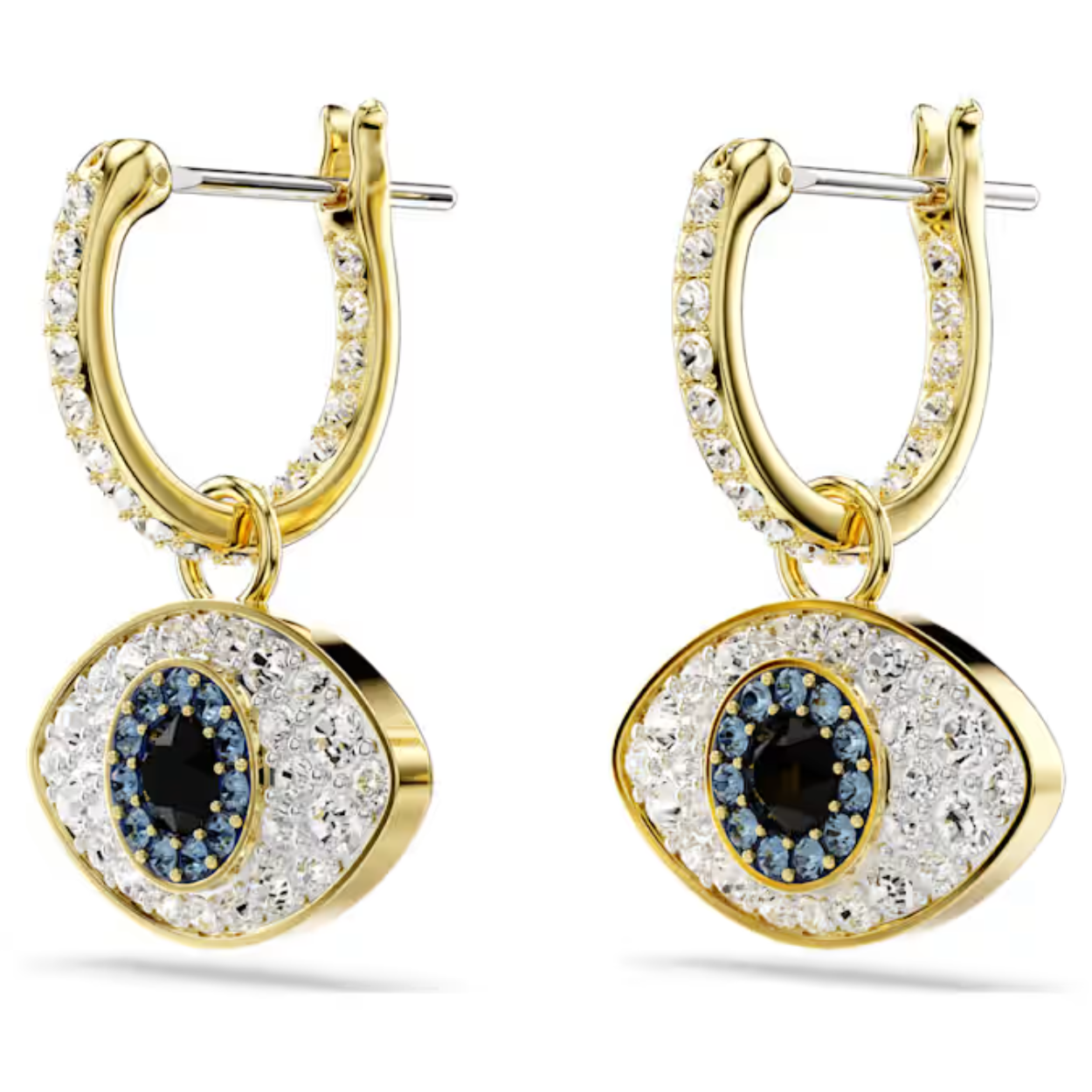 Stem af op uw spirituele kant met deze Symbolica-oorbellen. De koepelvormige boze oogmotieven hangen aan klassieke pavé oorringen en zijn versierd met heldere, blauwe en zwarte pavé. Deze oorbellen spelen in op het traditionele symbool en geven elke outfit een vleugje mystieke glamour.