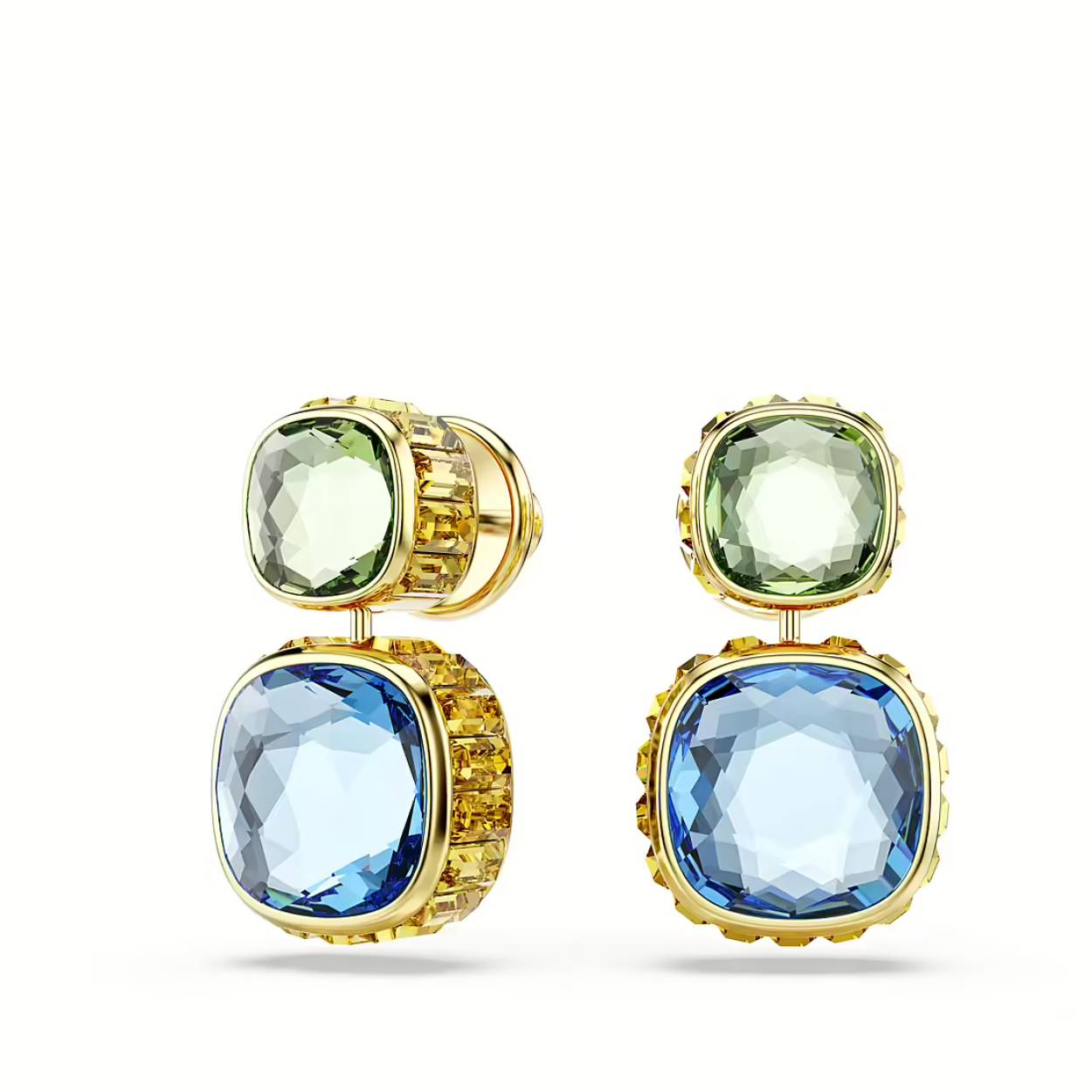 Deze Chroma Twist-oorstekers, met verschillende kleuren aan elke kant, zijn bijzonder veelzijdig. Elk sieraad met goudkleurige toplaag wordt aan het oor bevestigd met een groen Swarovski ReCreated™ crystal. Dankzij het omkeerbare ontwerp kunt u kiezen of u een blauw Swarovski ReCreated™ crystal of een levendige roze kristal wilt laten zien. De keuze is aan u. Creëer speelse combinaties met andere sieraden uit deze collectie en laat uw vreugdevolle kant stralen. Chroma Twist-sieraden bevatten minimaal 50% Swarovski ReCreated™ crystals. Het is onze eerste collectie die is ontworpen met circulariteit in gedachten.
