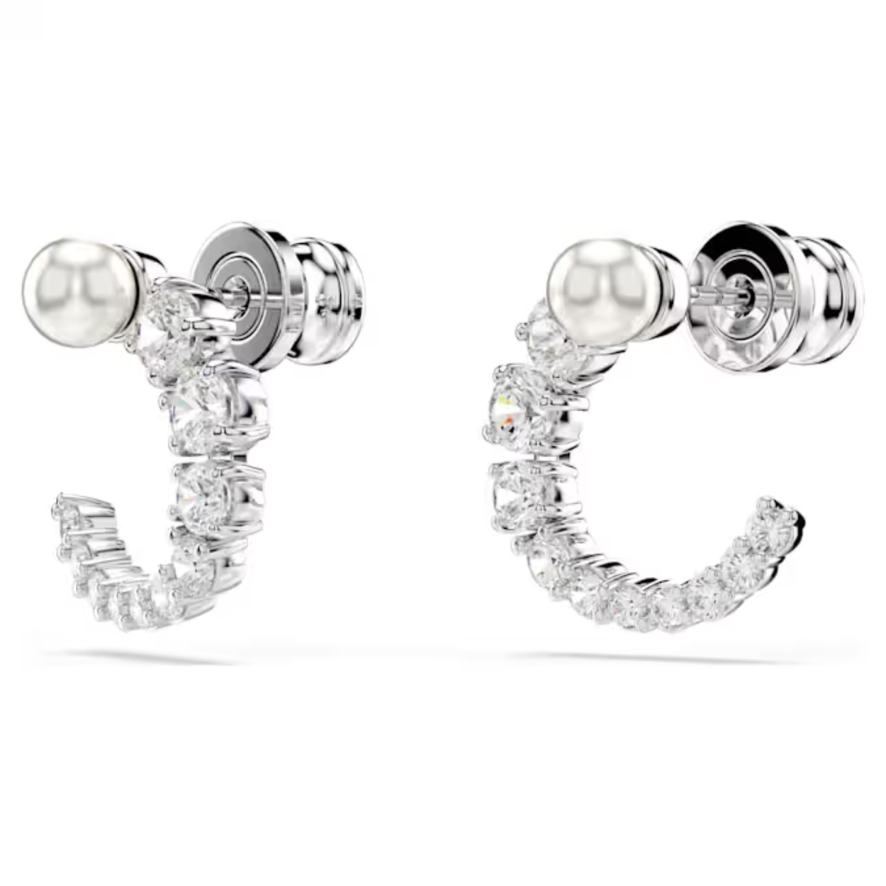 Elk detail van deze oorstekers straalt schoonheid uit. De oorknoppen met rhodium toplaag hebben een open ring bestaand uit heldere Swarovski Zirkonia in een verloop van klein tot groot. Bovenaan prijkt een witte Swarovski Crystal Pearl. Combineer ze met een bijpassende Matrix-hanger om alle aandacht te trekken.