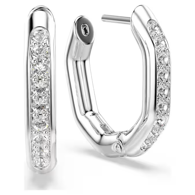 Maak een expressief statement met deze geometrische oorringen. Hun slanke achthoekige ontwerp vormt een krachtig frame voor de enkele rij heldere kristallen in een ronde slijpvorm, die elk in een delicate klauwzetting zijn geplaatst. Een speciaal veersysteem maakt deze oorbellen gemakkelijk te openen en te sluiten, terwijl de rhodium toplaag perfect te combineren is met andere Dextera-sieraden.