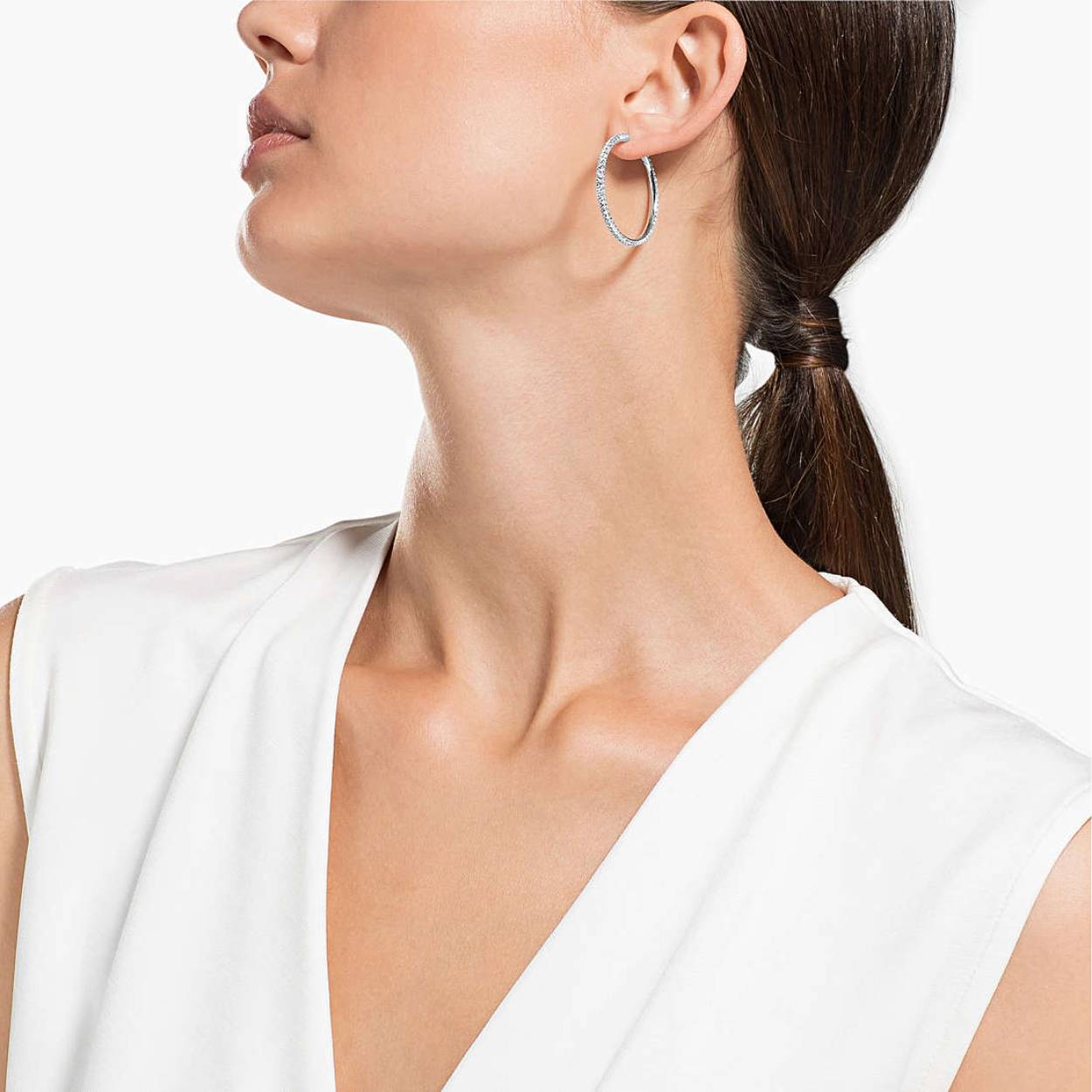 Met deze tijdloze ringen, versierd met kristallen pavé voor die speciale Swarovski-sprankeling. Het delicate, rodium-vergulde ontwerp is op elk moment van de dag gemakkelijk te dragen met elke outfit.