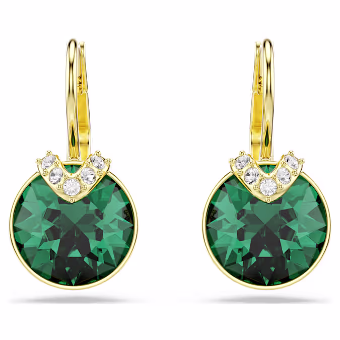 Voeg wat kleur toe aan uw dagelijkse garderobe met dit betoverende paar oorstekers. Elk stuk met goudkleurige toplaag komt tot leven met een groen kristal in Round-slijpvorm, wat zorgt voor een look van pure vreugde. Deze oorbellen zijn een perfecte keuze voor zowel overdag als ‘s avonds en kunnen worden gedragen met een bijpassende groene hanger.