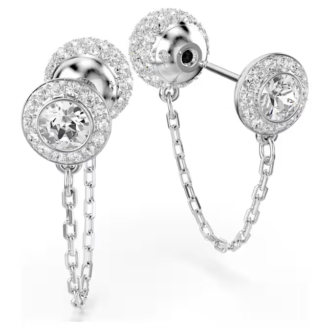 Straal verwondering uit met deze schitterende Swarovski-oorbellen. Elk exemplaar met rhodium toplaag heeft een lange ketting die is verbonden met een dubbelzijdig motief, met aan elke kant een andere weergave van kristallen in Round-slijpvorm. Het hangende motief kan ook aan de achterkant van de oorbel worden bevestigd voor een veelzijdige draagoptie. Combineer de oorbellen met andere Una Angelic-stukken voor een ultiem stralende look.
