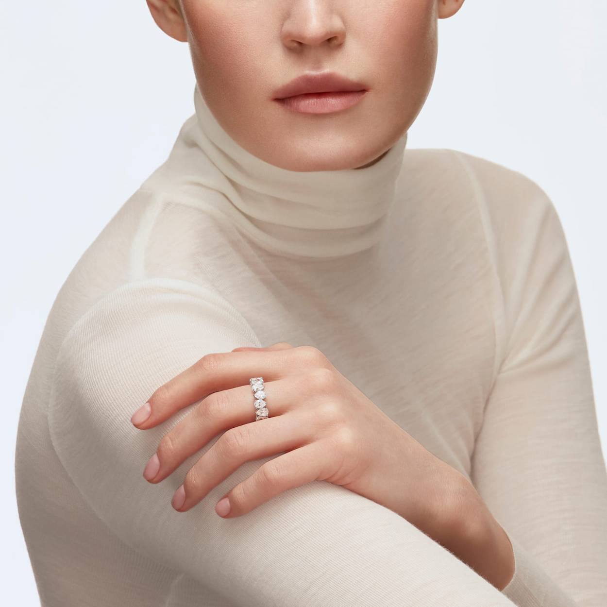 Deze ring van Swarovski is uitgevoerd met de sprankelende schoonheid van glanzende, gefacetteerde kristallen. Witte, druppelvormige elementen die in een enkele rij zijn gerangschikt, reflecteren en breken binnenkomend licht op schitterende wijze. De puristische, elegante vormen maken deze ring perfect om te combineren met andere sieraden en trendy gestapelde looks met bijpassende ringen. Een uitstekende keuze om een outfit voor speciale gelegenheden te verfraaien en een echt geinspireerd cadeau-idee.