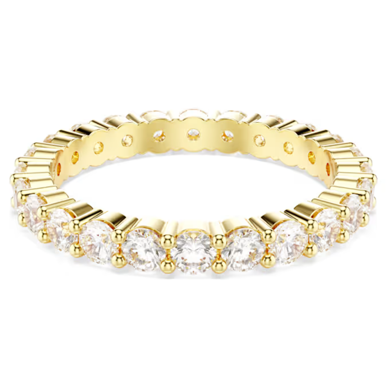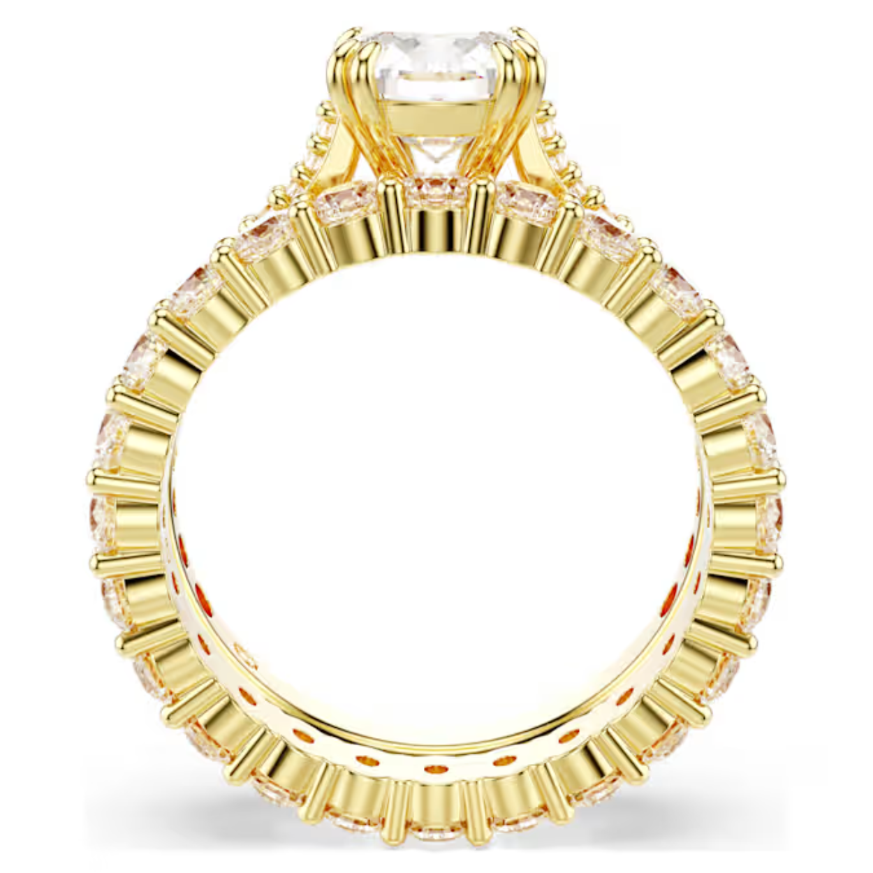 Dit spectaculaire sieraad weerspiegelt de schoonheid van de kosmos en bestaat in een eigen universum vol licht. Het ontwerp met goudkleurige toplaag combineert een bandring versierd met pavé met een solitaire-ring die ook met pavé is versierd. In het midden van de ring prijkt een grote Swarovski Zirkonia. Een stralend cadeau waarin de kenmerkende savoir-faire van Swarovski prachtig tot uiting komt.