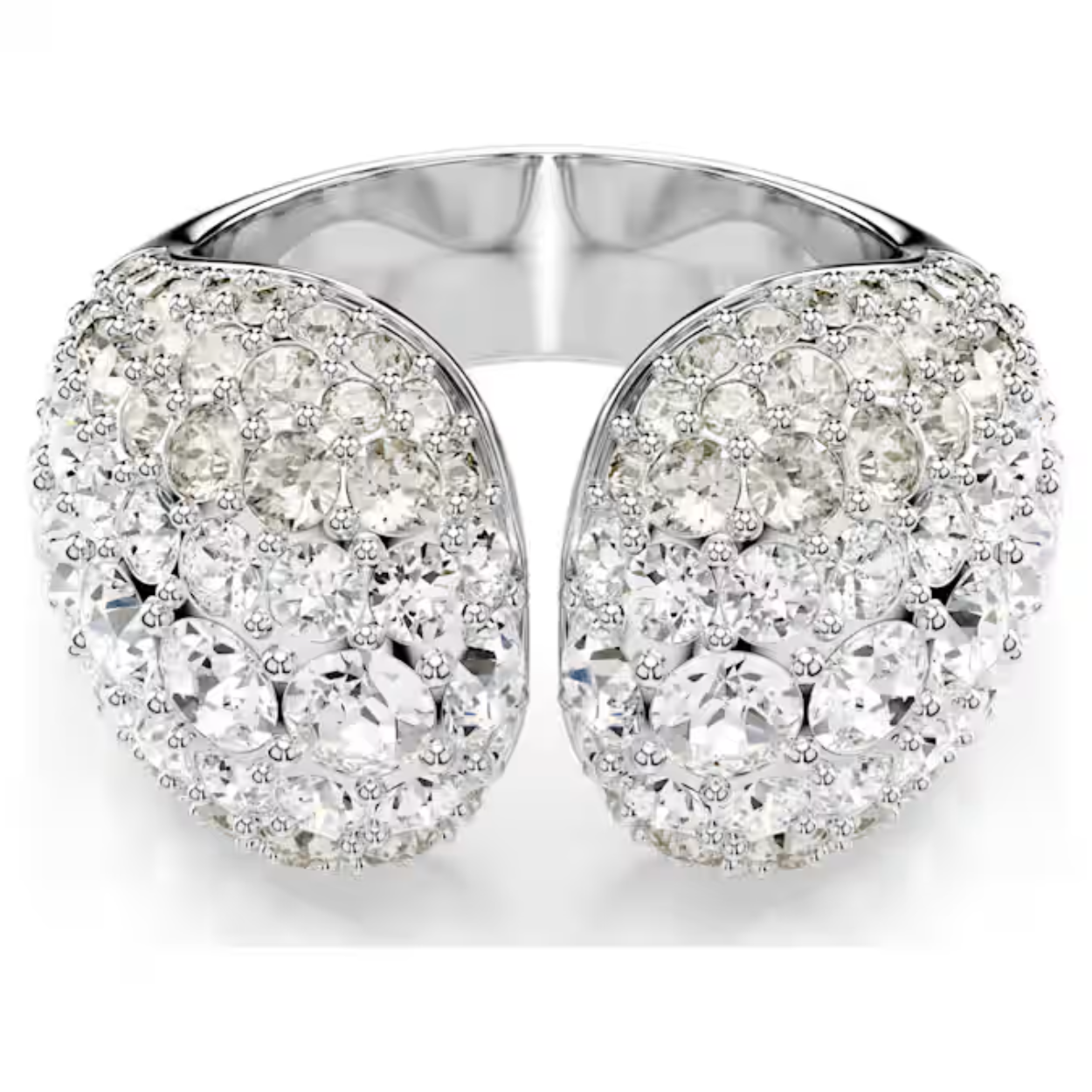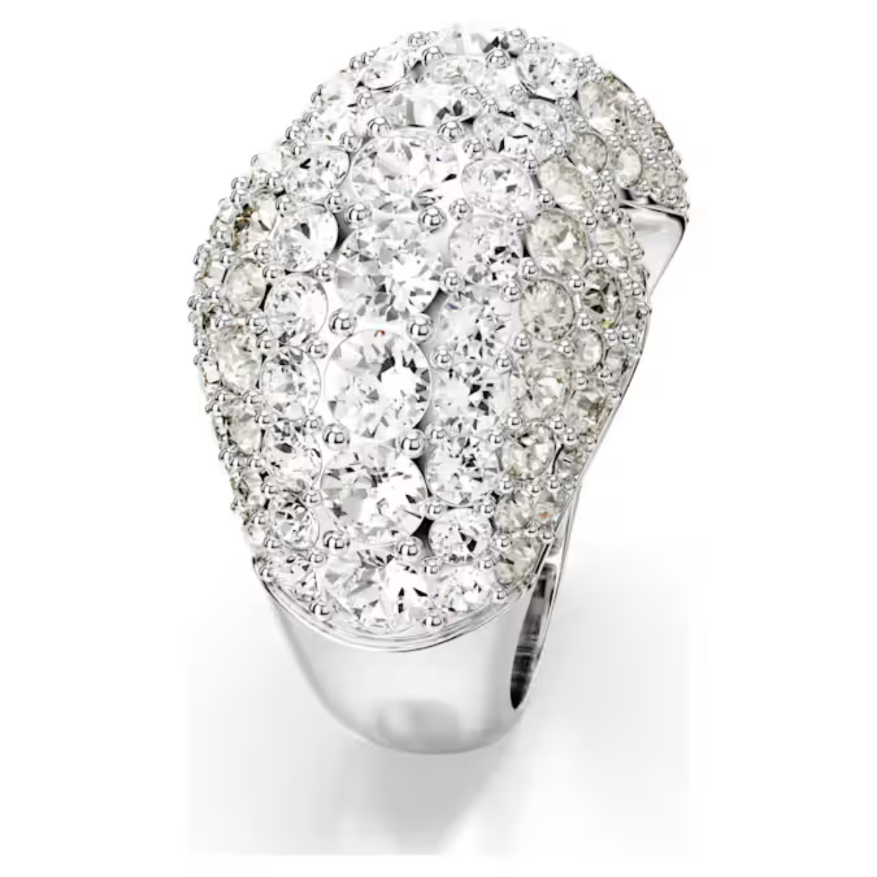 Voeg een vleugje extra glamour toe met deze oogverblindende Sublima-cocktailring. Het unieke pavé-ontwerp is voorzien van een rhodium toplaag en een gebolde metalen basis om uitzonderlijk volume te creëren. Het Meteora-patroon van kristallen in verschillende formaten verrijkt de betoverende uitstraling. Combineer dit gewaagde stuk met bijpassende Sublima-oorbellen voor een adembenemende look.