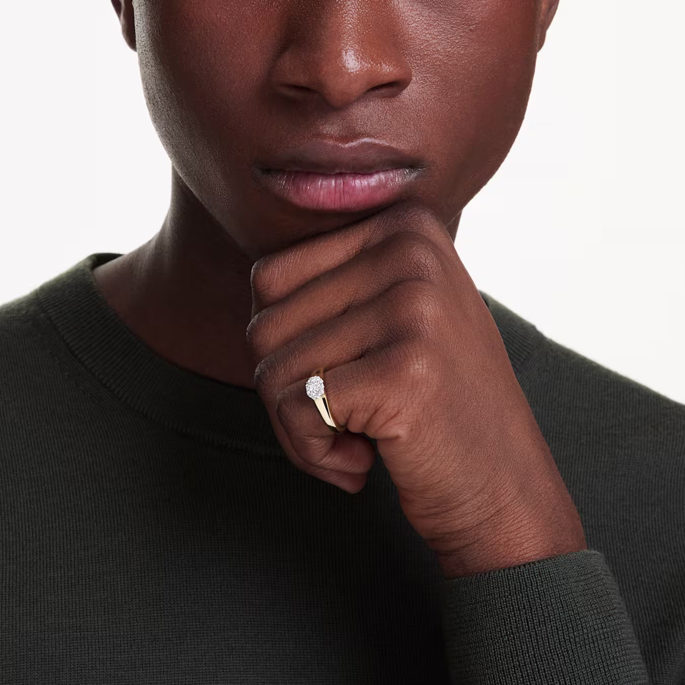 Deze originele Dextera-midiring is perfect om te combineren met andere ringen of om te dragen naast een bijpassende armband. De band met goudkleurige toplaag is voorzien van ronde kristallen in verschillende groottes, vakkundig gezet in een achthoekige formatie met behulp van Swarovski’s rhodium flash-techniek. Draag hem als uw favoriete ring voor alledaagse elegantie.